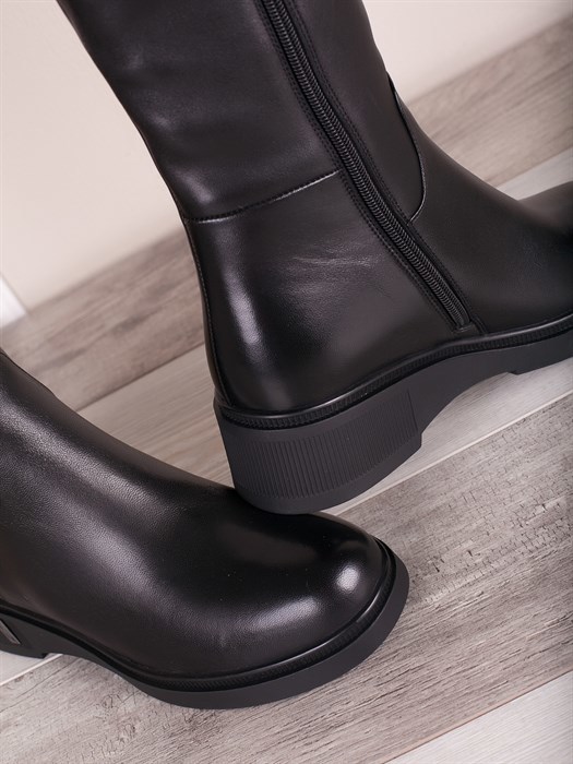 Вид застежки: Молния-замок Вид обуви: Ботинки Высота голени (см): 17 Высота каблука (см): 4 Высота подошвы (см): 2 Материал низа: Термопластичная резина(ТПР) Материал стельки: Натуральный мех Модель о... Показать описаниебуви: Повседневная обувь Назначение обуви: Офис/ Университет/ Школа/ Прогулка/ Отдых Ортопедия: Да Полнота обуви: Средняя Декоративные элементы: Креативный декор Материал верха: Натуральная кожа Материал подкладки: Натуральный мех Особенности модели: Комфорт/ Качество/ Практичность/ Свобода движений Сезонность: Зима Страна производства: КИТАЙ Цвет: Черный Габариты упаковки (мм): 280x110x280 Справочник по размерам: 36 размер - стелька 22,5-23см-голень-29см 37 размер - стелька 23-23,5см-голень-29см 38 размер - стелька 24-24,5см-голень-29,5см 39 размер - стелька 24,5-25см-голень-30см 40 размер - стелька 25-25,5см-голень-30см