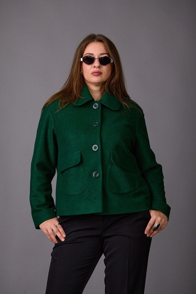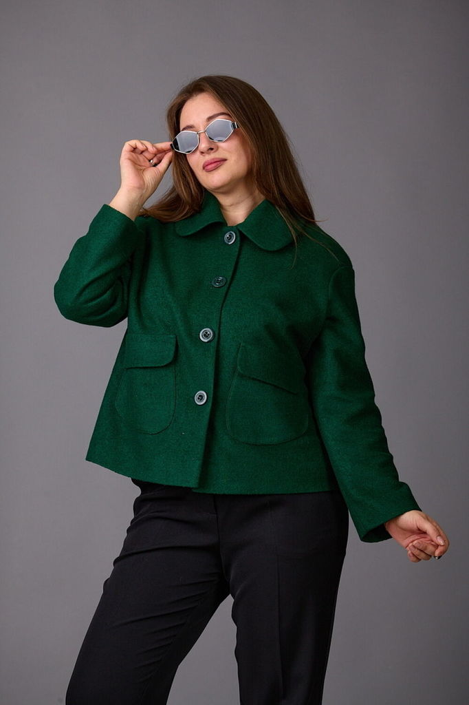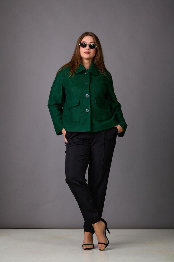 Состав: Жакет: Вискоза-20%; ПЭ-30%; ПАН-50%; Подкладка: ПЭ-100%; Модель отшивается под заказ. Срок пошива от 3 недель. МОДЕЛЬ ОТПРАВЛЯЕТСЯ ПРИ 100% ПРЕДОПЛАТЕ. Жакет на подкладке из пальтовой ткани «п... Показать описаниеод каракуль». Силуэт прямой, по переду нагрудные вытачки и накладные карманы с клапанами округлой формы. Пройма спущена, рукава узкие. Воротник с закругленными углами с притачной стойкой. Застегивается на 4 пуговицы. Подходит на рост 164-170. Замеры готовых изделий 42-56 Длина см 57 57 57 59 59 59 61 61 Длина рукава от горловины 72,5 72,5 72,5 73 73 73 74,5 74,5 Ширина по груди 52 54 56 58 60 62 64 66 Ширина по талии 50 52 54 56 58 60 62 64 Ширина по бедрам 52 54 56 58 60 62 64 66 Ширина рукава вверху 16,5 17,5 18,5 19,5 20,5 21,5 22,5 23,5 Ширина рукава внизу 13 13,5 14 14,5 15 15,5 16 16,5