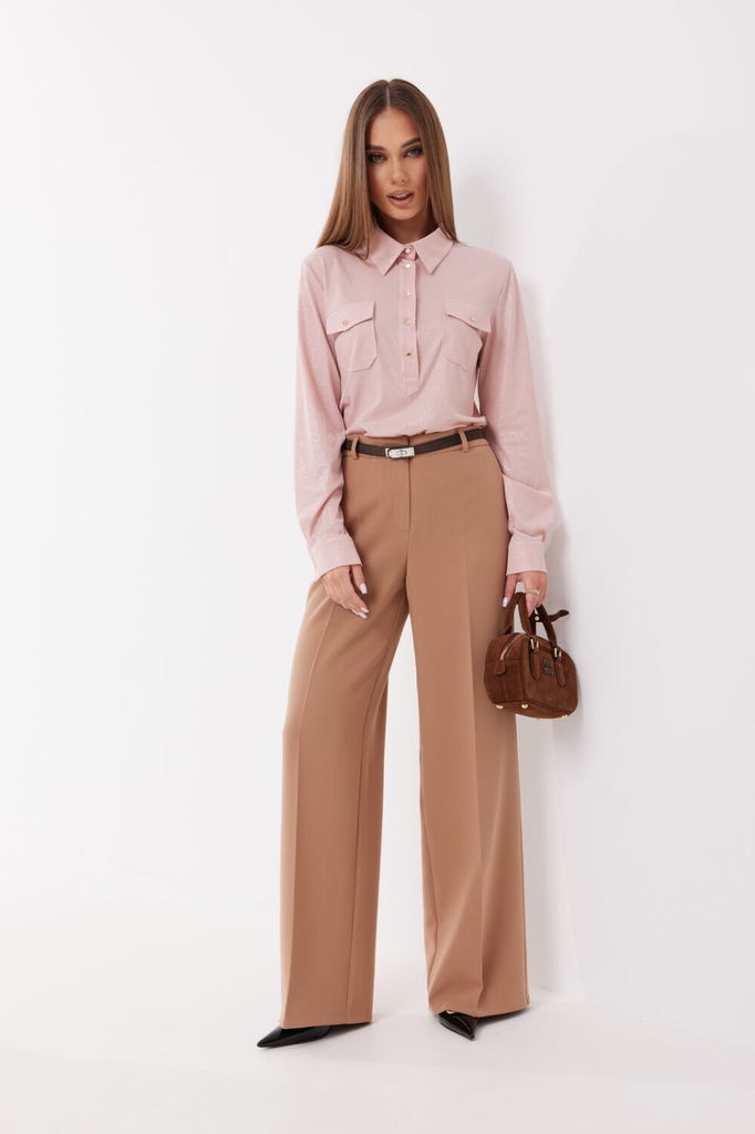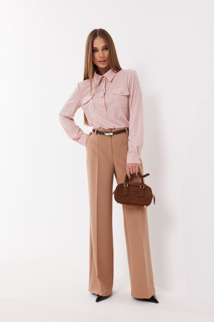 Состав: ПЭ-95%; Спандекс-5%; Блузка женская из блузочной ткани с деликатным блеском, свободного силуэта, с застежкой по переду сверху до низа блузки на пять петель и пуговиц. Рукава длинные со складко... Показать описанией внизу, низ рукава на манжете, манжет застегивается на петлю и пуговицу. По плечевым швам и рукаву имитация застежки на планку по всей длине. По планке в верхней части четыре петли и декоративные пуговицы, снизу рукав с «распахивающимися» планками. Воротник - невысокая стойка, прилегающий к шее. Блузка декорирована эффектными пуговицами в стиле «скиапарелли». Длина блузки 67 см. Длина рукава с манжетой - 61 см. Измерения по готовому изделию: 44 р-р: ОГ - 109 см., ОТ - 110 см., ОБ - 111 см. 46 р-р: ОГ - 113 см., ОТ - 114 см., ОБ - 115 см. 48 р-р: ОГ - 117 см., ОТ - 118 см., ОБ - 119 см. 50 р-р: ОГ - 121 см., ОТ - 122 см., ОБ - 123 см. 52 р-р: ОГ - 125 см., ОТ - 126 см., ОБ - 127 см.