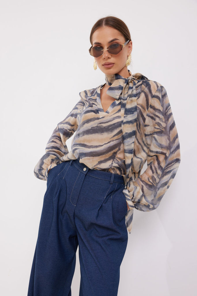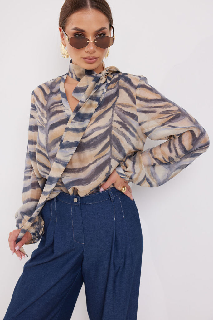 Состав: Вискоза-87%; Нейлон-13%; Блузка женская прямого силуэта выполнена из легкой современного дизайна ткани. Рукав длинный с легкой сборкой и манжетой по низу. Перед с v- образным вырезо... Показать описанием. Воротник стойка переходящая в завязку, образуя бант или узел. Измерения по готовому изделию: 44 р-р: ОГ - см., ОТ - см., ОБ - см. 46 р-р: ОГ - см., ОТ - см., ОБ - см. 48 р-р: ОГ - см., ОТ - см., ОБ - см. 50 р-р: ОГ - см., ОТ - см., ОБ - см. 52 р-р: ОГ - см., ОТ - см., ОБ - см.