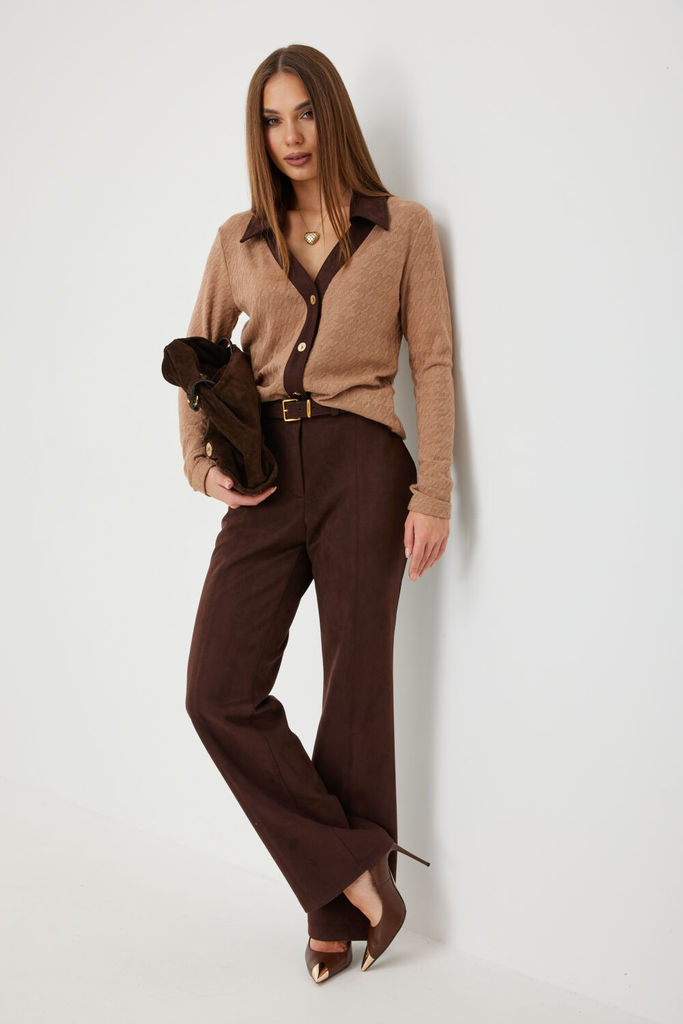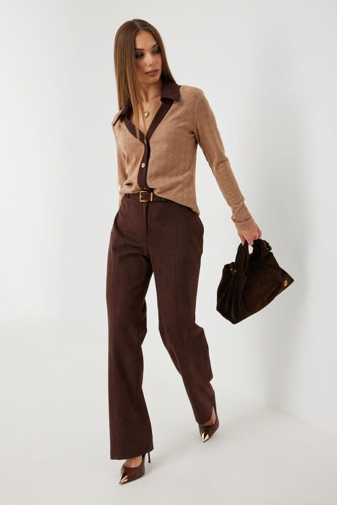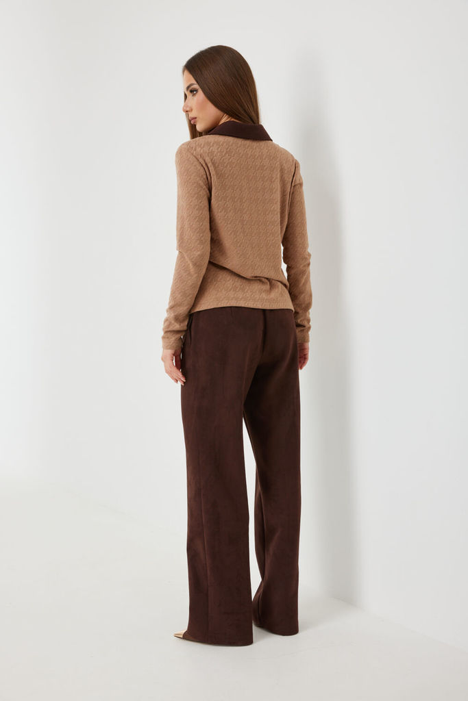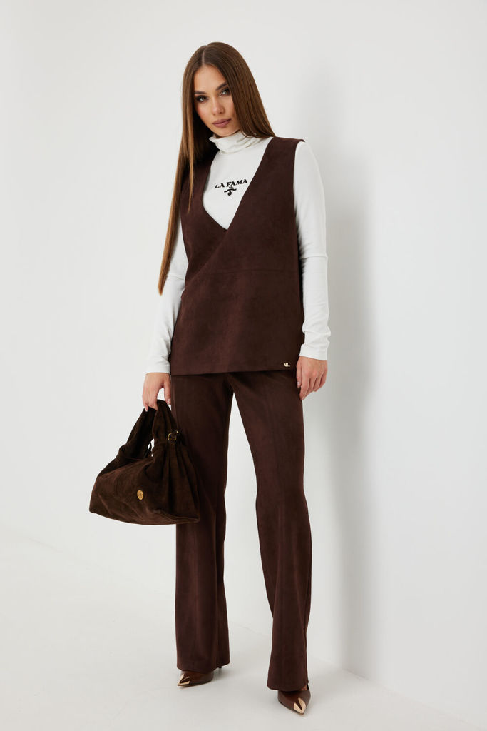 Состав: ПЭ-92%; Спандекс-8%; Брюки женские из трикотажного полотна «бархат», прилегающего силуэта, удлинённые, расклешенные книзу, с высокой посадкой, пояс притачной с резинкой сзади, застежка в боков... Показать описаниеом шве на потайную молнию. Пояс брюк спереди декорирован съемной цепочкой. Длина по боковому шву - 115 см. Длина по шаговому шву - 85 см. Измерения по готовому изделию: 44 р-р: ОТ - 79 см., ОБ - 91 см. 46 р-р: ОТ - 83 см., ОБ - 95 см. 48 р-р: ОТ - 87 см., ОБ - 99 см. 50 р-р: ОТ - 91 см., ОБ - 103 см. 52 р-р: ОТ - 95 см., ОБ - 107 см.