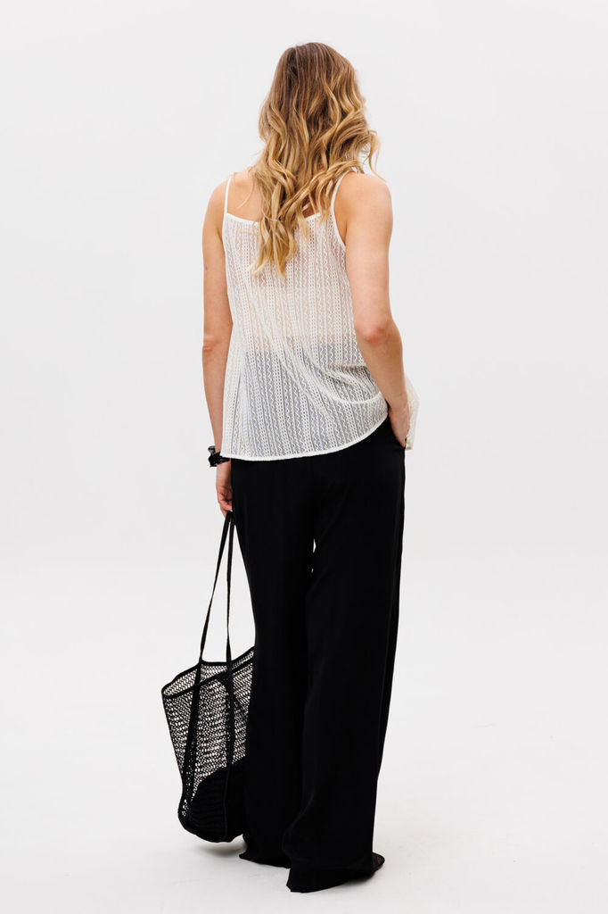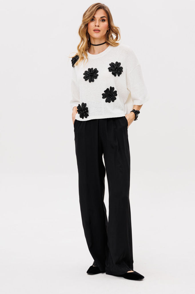 Состав: ПЭ-100%; Брюки выполнены из сетки с рисунком. Брюки прямого силуэта, длиной в пол, на притачном поясе с эластичной тесьмой. Длина: 111 см. Гарантийный срок не установлен ГОСТ 25294-2003