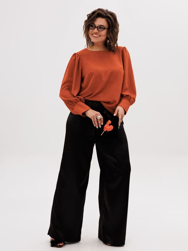 Состав: Вискоза-28%; ПЭ-68%; Эластан-4%; Блуза от Анелли цвета осеннего клена с присборенным рукавом по окату и манжетам - это идеальный выбор для тех, кто ценит качество и стиль. Эта блуза создана, ч... Показать описаниетобы вы подчеркнули свою уверенность в себе и выразили свой неповторимый вкус. С утра на встречу с клиентами или на деловую презентацию, эта блуза придаст вам профессиональный и стильный вид. Её оттенок придает яркости и тепла вашему облику, а присборенные рукава добавляют женственности и изысканности. А вечером, встречаясь с друзьями или на свидании, вы будете в центре внимания, ведь эта блуза подходит и для повседневных, и для особенных моментов. Вы заслуживаете лучшего, и наша блуза - это не просто одежда, это выражение вашей утонченности и стиля. Доверьтесь ей, и вы будете чувствовать себя непревзойденно на любом мероприятии. Замеры: Размер 48: ОГ-100, ОТ-104; ОБ-108, ОП-48, ДИ-59, ДР-61; Размер 50: ОГ-106, ОТ-110; ОБ-114, ОП-50, ДИ-63, ДР-60; Размер 52: ОГ-110, ОТ-114; ОБ-118, ОП-54, ДИ-62, ДР-60; Размер 54: ОГ-114, ОТ-118; ОБ-124, ОП-56, ДИ-64, ДР-60.