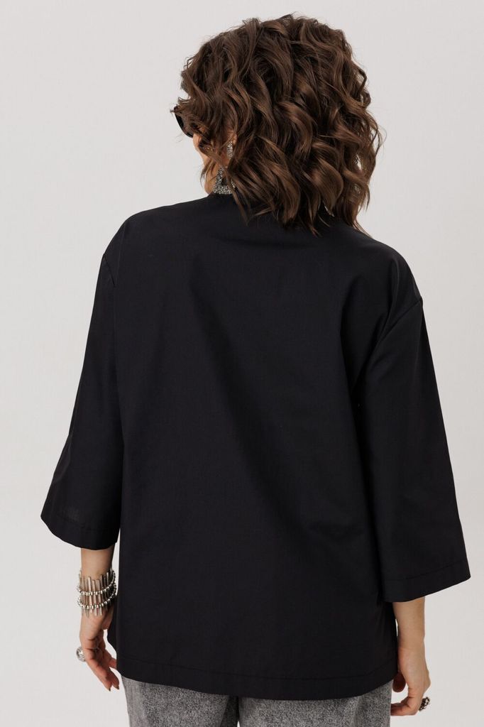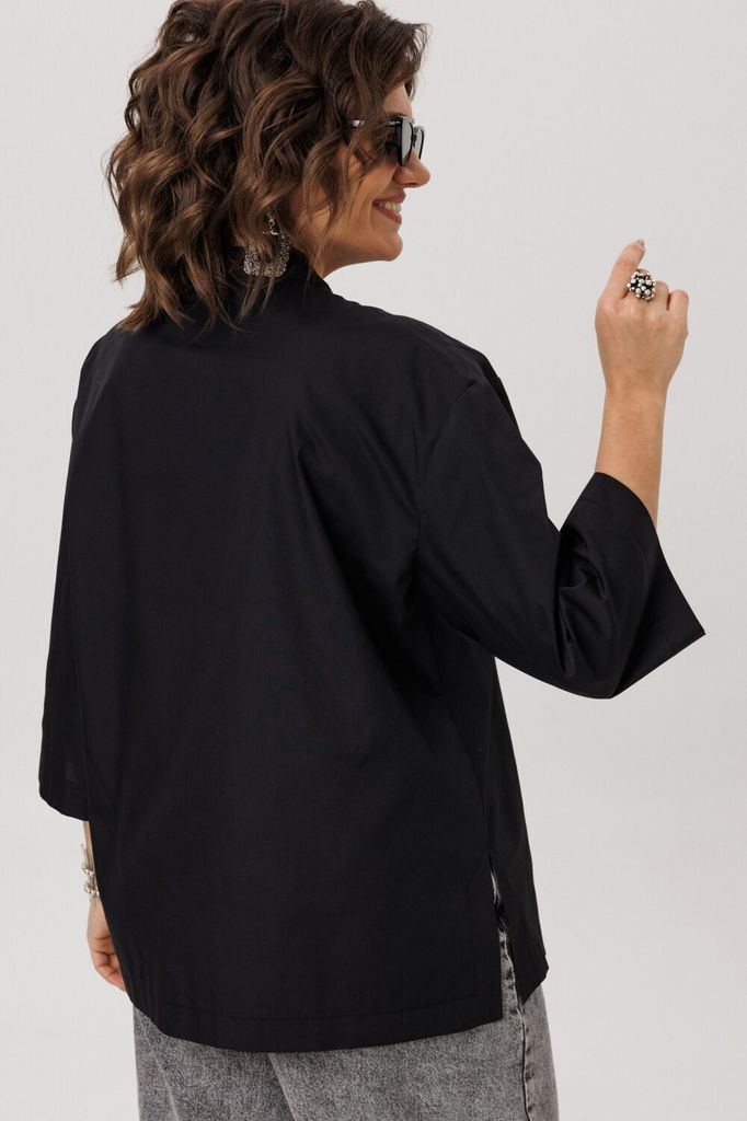 Состав: Хлопок-100%; Коллекция азиатских мотивов в современном прочтении. Эта блуза от Анелли— воплощение изысканной простоты и тонкой эстетики, где каждая деталь выверена и несет в себе глубокий смыс... Показать описаниел. Прямой силуэт, ниспадающий мягкими складками, обладает умиротворяющей гармонией и скрывает все лишнее, создавая идеальный контур. Выразительным акцентом служит элегантная стойка, подчеркивающая линию шеи и придающая образу собранность и утонченность. Спущенная линия плеча смягчает образ, добавляя ему непринужденной элегантности и художественного шарма. Лаконичный рукав три четверти открывает самое изящное место на запястье, делая жест более выразительным и грациозным. Неброская потайная застежка обеспечивает безупречно чистую линию полотна, сохраняя целостность замысла. А по бокам расположены деликатные разрезы, которые открываются при движении, позволяя ткани красиво колыхаться и добавляя динамики вашему шагу. Финальный штрих, превращающий вещь в настоящее искусство, — это воздушные бантики. Эта блуза — больше, чем просто предмет гардероба. Это высказывание. Она способна преобразить самый сдержанный лук, наполнив его смыслом, светом и безупречным вкусом. Она станет вашим тайным оружием, источником спокойной уверенности и неоспоримой привлекательности. Замеры: Размер 48: ОГ-113; ОТ-115; ОБ-118; ОП-40; ДИ-69; ДР-41; ШП-18; Размер 50: ОГ-117; ОТ-119; ОБ-123; ОП-42; ДИ-70; ДР-42; ШП-18; Размер 52: ОГ-122; ОТ-124; ОБ-128; ОП-44; ДИ-70; ДР-42; ШП-18,5; Размер 54: ОГ-126; ОТ-128; ОБ-132; ОП-46; ДИ-70; ДР-41; ШП-18,5; Размер 56: ОГ-130; ОТ-132; ОБ-136; ОП-48; ДИ-70; ДР-41; ШП-18,5; Размер 58: ОГ-134; ОТ-136; ОБ-140; ОП-48; ДИ-71; ДР-41; ШП-19,5; Размер 60: ОГ-138; ОТ-140; ОБ-144; ОП-50; ДИ-71; ДР-41; ШП-19,5.