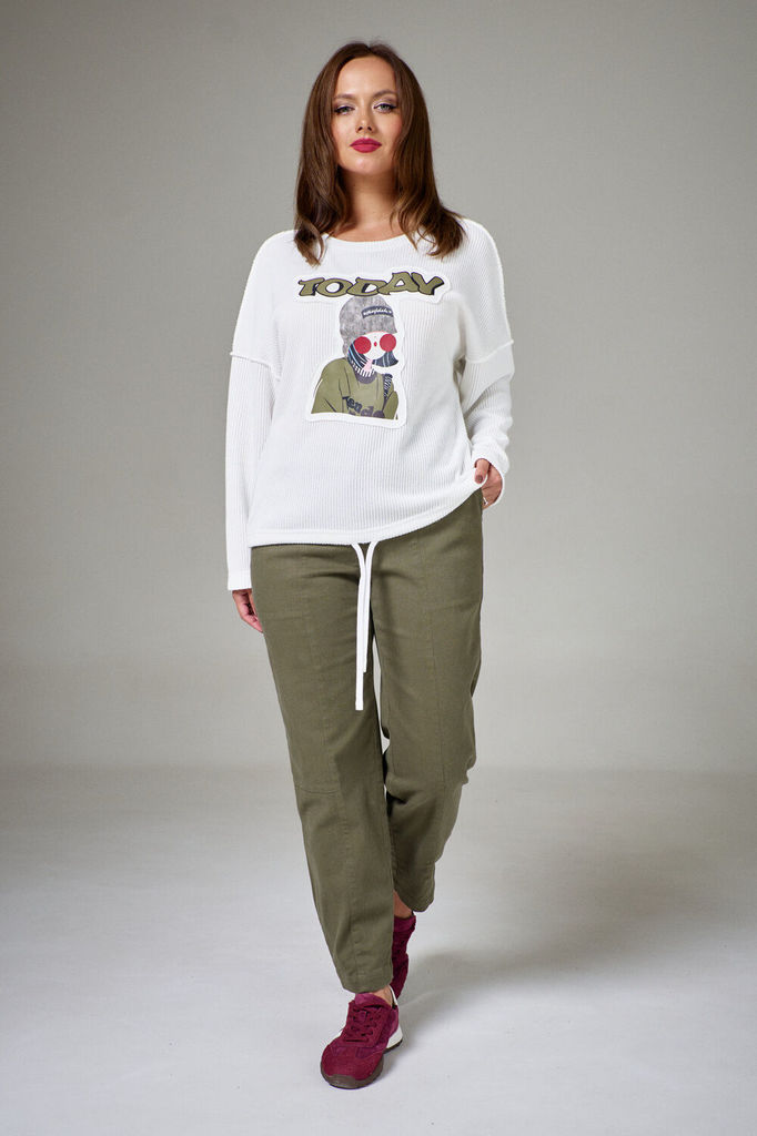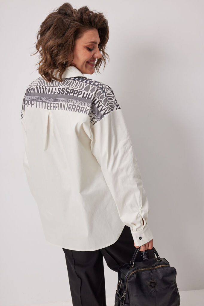 Состав: Спандекс-6%; Хлопок-94%; Если Вы ищете что-то особенное и эффектное, что подчеркнёт Вашу индивидуальность, эта блуза именно то, что нужно! Блуза выполнена из сочетания однотонного и принтованн... Показать описаниеого хлопкового текстиля. Стильный текстовый принт добавит индивидуальность в повседневный образ и сделает его запоминающимся! Блуза свободного кроя с отложным воротником на планке с застёжкой на петли – пуговицы контрастного цвета. Рукав со спущенной проймой на манжете. Спинка на кокетке со встречной складкой. Низ спинки имеет фигурную форму. К модели идеально подходят брюки арт. 6069, брюки арт. 6068. Для того, чтобы правильно подобрать свой размер, необходимо ваш замер объёма груди разделить на 2. (например, объём груди 104:2=52 размер). Блуза: длина по спинке от плеча: 78 см длина рукава от горловины: 79 см Обхват груди: 118см/48р; 122см/50р; 126см/52р; 130см/54р; 134см/56р; 138см/58р; 142см/60р; 146см/62р. Рост фотомодели 174 см, размер одежды на фото 52.