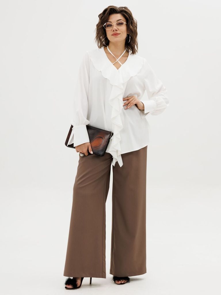 Состав: Вискоза-72%; ПЭ-24%; Эластан-4%; Брюки палаццо – это воплощение элегантности и безупречного стиля. Широкие, струящиеся силуэты, мягко ниспадающие от талии, создают эффект роскошного движения ... Показать описаниес каждым шагом. Идеальная посадка достигнута за счет эластичной резинки по спинке, которая мягко облегает фигуру, подчеркивая линию талии и обеспечивая комфорт в течение всего дня. Широкие штанины визуально удлиняют ноги, добавляя образу женственности и грации. Функциональность встречает стиль – два аккуратных кармана не только добавляют удобства, но и придают брюкам современный, слегка бунтарский шарм. Ткань высшего качества мягко обволакивает тело, сохраняя форму и безупречный вид даже при активном движении. Эти брюки станут вашим незаменимым выбором как для повседневных образов, так и для особых случаев. Они могут быть стильно сочетаемыми с топами, блузами и обувью разных стилей, подчеркивая вашу индивидуальность и женственность. На модели в брюках цвета "кора дуба" футболка 1280, блуза 1679, рубашка 1203.1, жилет 1502. Также, можно собрать образ жилета с брюками в костюм под артикулом 1501. Рост модели 173 см, размер 52. Для того чтобы подобрать для себя идеальный размер, обязательно сверяйтесь с замерами в описании, мы их делаем индивидуально к каждому изделию. А если будут вопросы задавайте их менеджерам или пишите в отдел заботы. Замеры: Размер 52: ОТ (резинка растянута) - 90; ОБ-116; ДИ-109; ширина по низу - 64; Размер 54: ОТ (резинка растянута) - 94; ОБ-120; ДИ-109; ширина по низу - 64; Размер 56: ОТ (резинка растянута) - 98; ОБ-124; ДИ-109; ширина по низу - 66; Размер 58: ОТ (резинка растянута) - 102; ОБ-128; ДИ-109; ширина по низу - 66; Размер 60: ОТ (резинка растянута) - 106; ОБ-132; ДИ-109; ширина по низу - 66; Размер 62: ОТ (резинка растянута) - 112; ОБ-138; ДИ-109; ширина по низу - 66; Размер 64: ОТ (резинка растянута) - 118; ОБ-140; ДИ-109; ширина по низу - 68.