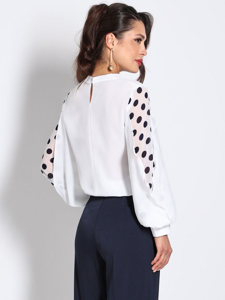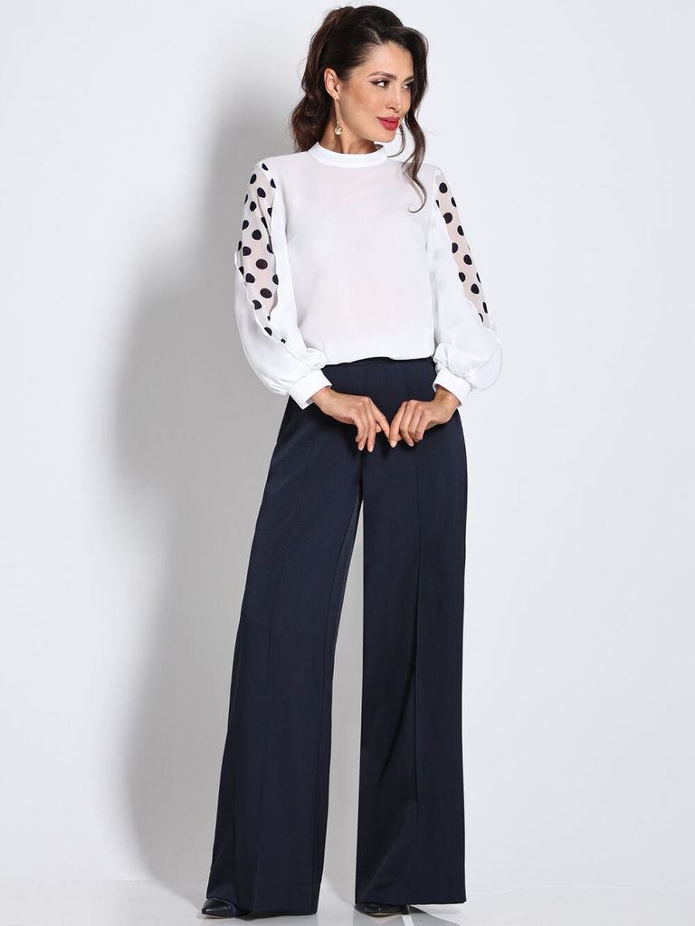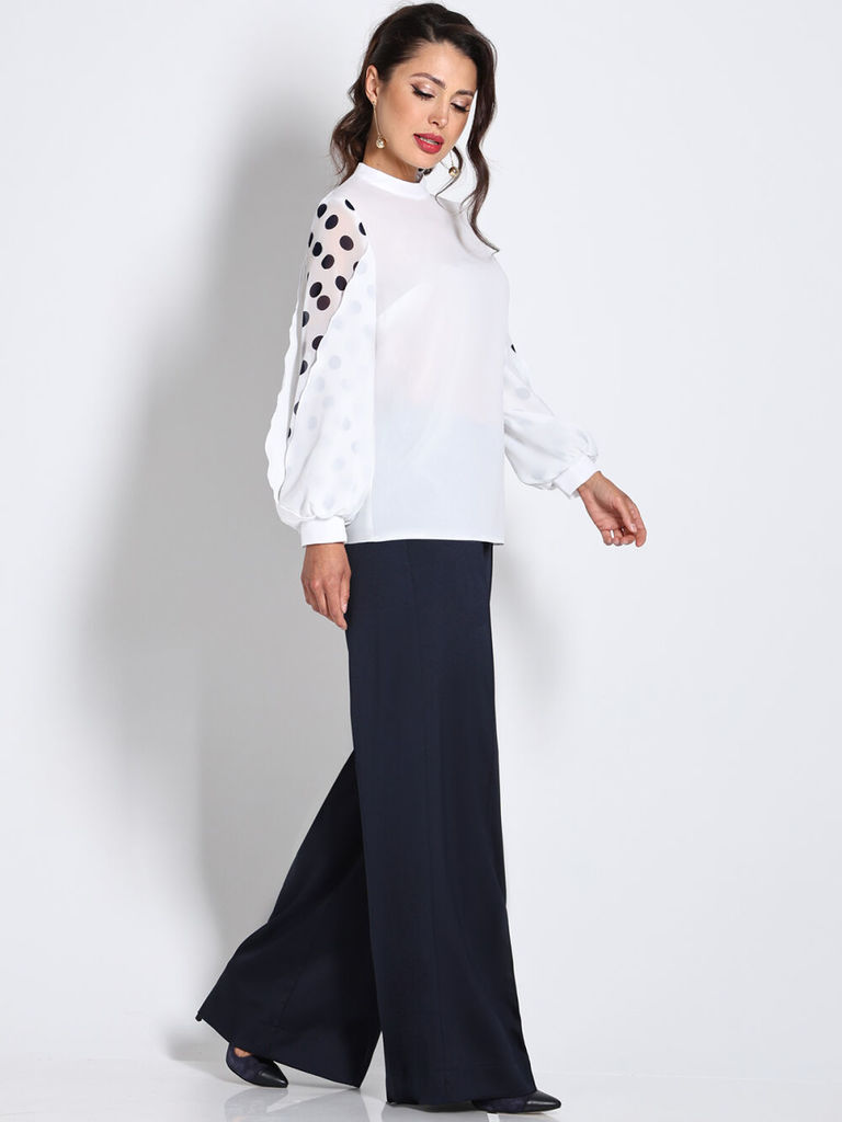 Состав: Вискоза-5%; ПЭ-92%; Спандекс-3%; Женская блузка полуприлегающего силуэта, сочетающая строгость кроя с изысканными акцентами. Передняя часть c нагрудными выточками, обеспечивающими комфортную п... Показать описаниеосадку. Центральная бортовая застёжка — на 6 или 7 пуговиц (в зависимости от размера), придаёт образу классическую завершённость. Особое внимание привлекает кружево, изящно нашитое в верхней и нижней части переда — оно добавляет лёгкости и утончённости, делая блузку особенно женственной. Спинка цельнокроеная, без дополнительных швов, что подчёркивает чистоту силуэта. Рукава втачные, с элегантной линией плеча. Низ рукава оформлен притачной манжетой, застёгивающейся на две пуговицы — аккуратный акцент, подчёркивающий запястья и гармонирующий с кружевными деталями. Воротник рубашечного типа с отрезной стойкой — строгий, но изящный элемент, который придаёт изделию архитектурную чёткость и завершённость. Его форма удачно балансирует между классикой и романтичным стилем. Уход: бережная стирка при температуре не выше 30°С.