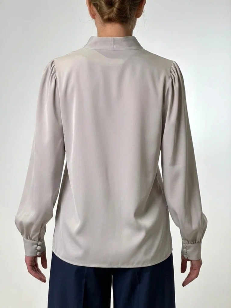 Блузка из органзы с бархатной завязкой и защипами OD-951-2 серо-зеленыйВопросы по товару