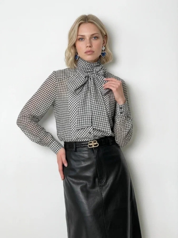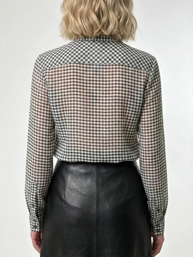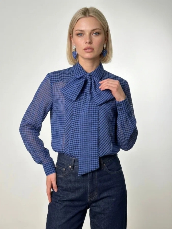 Блузка из органзы в клетку OD-984-2 коричневый с белымВопросы по товару