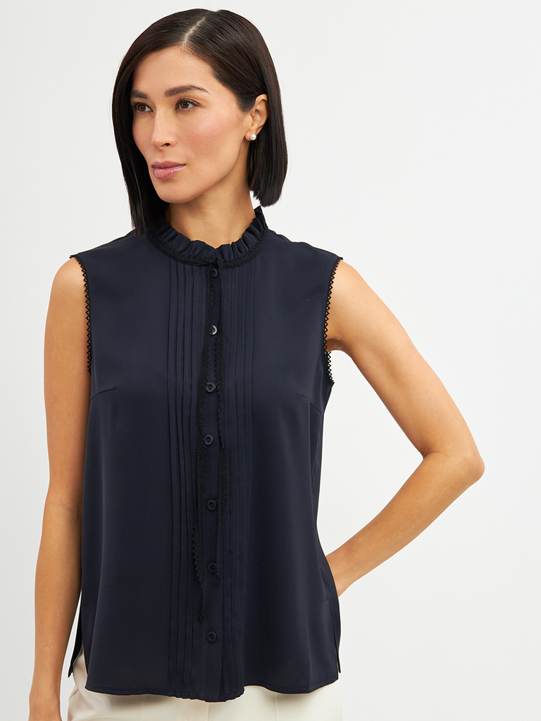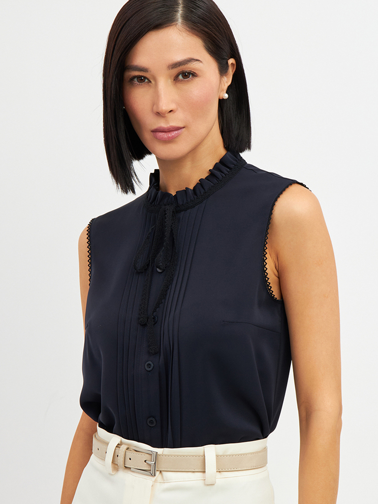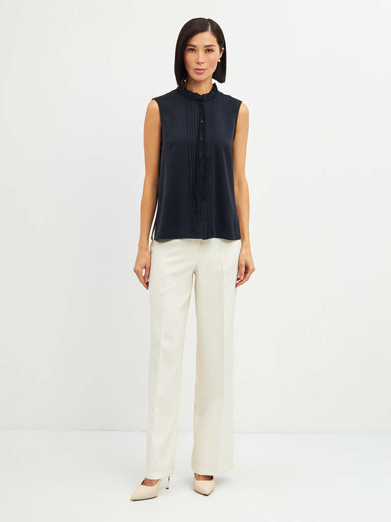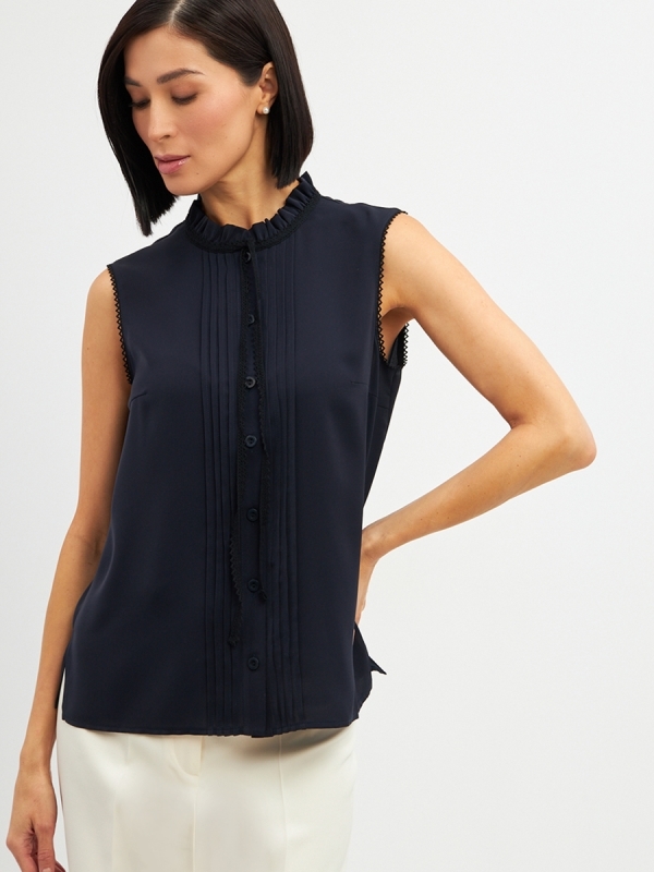 Блузка без рукавов с отделкой из тесьмы OD-973-2 т. синийВопросы по товару