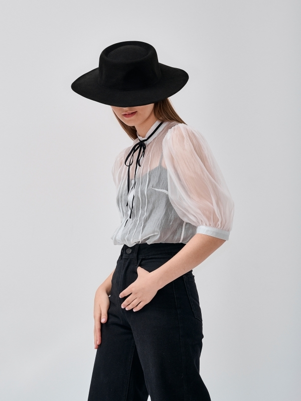 Блузка из органзы с мушками и галстуком OD-986-1 черныйВопросы по товару