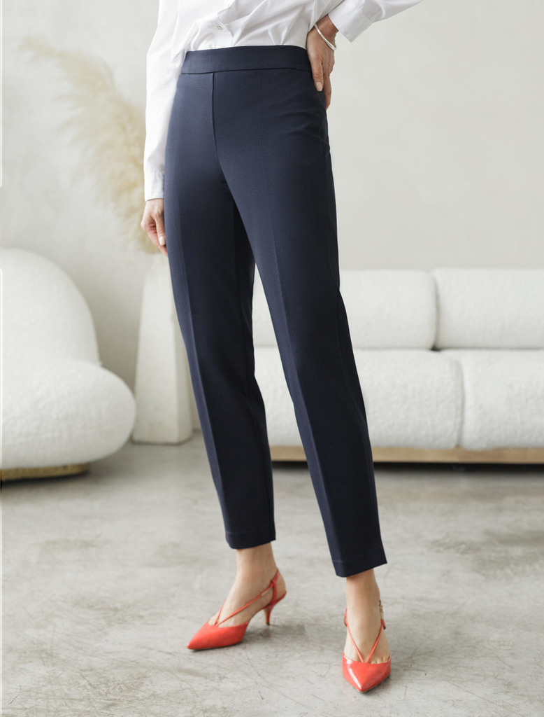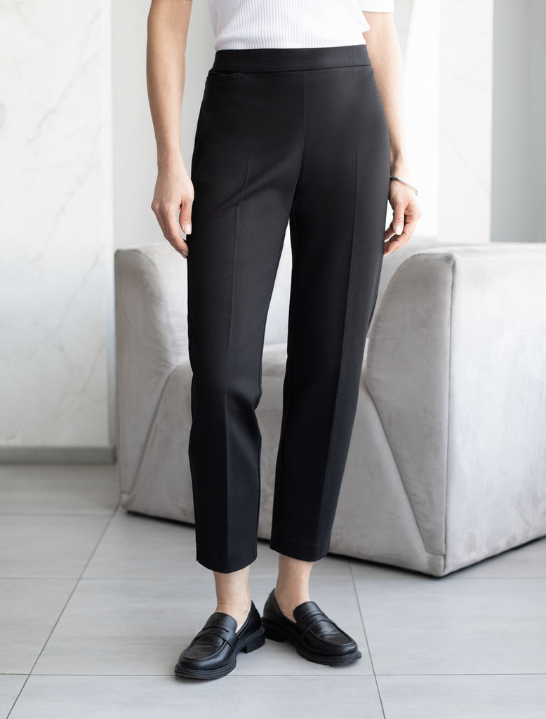 Брюки со стрелками из плотного джерси на резинке сзадиВопросы по товару