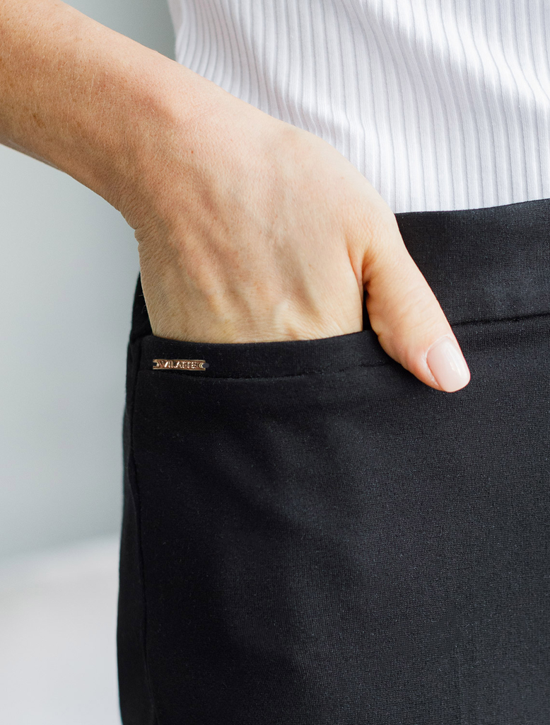 Состав: 50%Хлопок 30%ПУ 20%ПЭ Размер товара на первом фото: 42 Брюки-дудочки выполнены из джерси. Модель дополнена резинкой сзади, одним вместительным карманом спереди и небольшими боковыми разрезами.... Показать описание Заутюженные стрелки и посадка на талии визуально вытягивают силуэт. Изделие хорошо держит форму, отлично тянется и почти не мнется во время использования. Идеальный вариант в офис или в повседневный классический стиль.