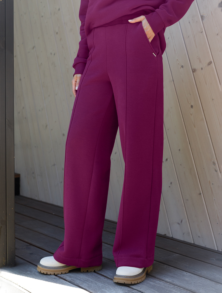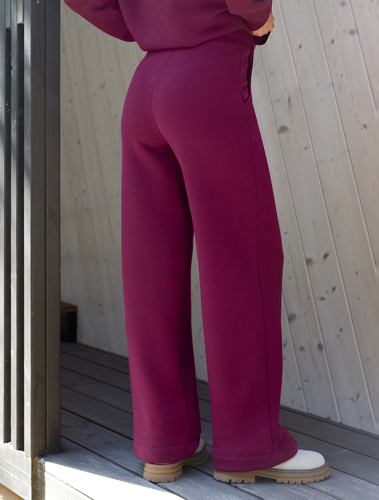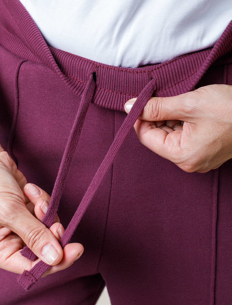 Состав: 80%Хлопок 20%ПЭ Плотность: 320 Г/м2 Размер товара на первом фото: 42 Сочетается с артикулами: D49.061, D49.102, D49.103 Теплые брюки прямого кроя с удобным поясом на резинке и карманами по бок... Показать описаниеам выполнены из премиального футера-трехнитки. Наличие эластана в составе гарантирует комфорт и долговечность изделия, материал хорошо пропускает воздух, позволяя телу дышать, а мягкий начес обеспечивает дополнительное тепло и комфорт в прохладную погоду. Эти уютные брюки стильного пурпурного цвета созданы для вашего комфорта. Свободный прямой крой обеспечивает свободу движений и максимальное удобство в любых ситуациях, поэтому они подойдут и на большие размеры, а так же на высокий или низкий рост. Фигура подчеркивается, а силуэт визуально вытягивается за счет кроя палаццо и застроченных декоративных стрелок. В повседневных трикотажных брюках вы будете чувствовать себя комфортно и уверенно, наслаждаясь каждым моментом дня.