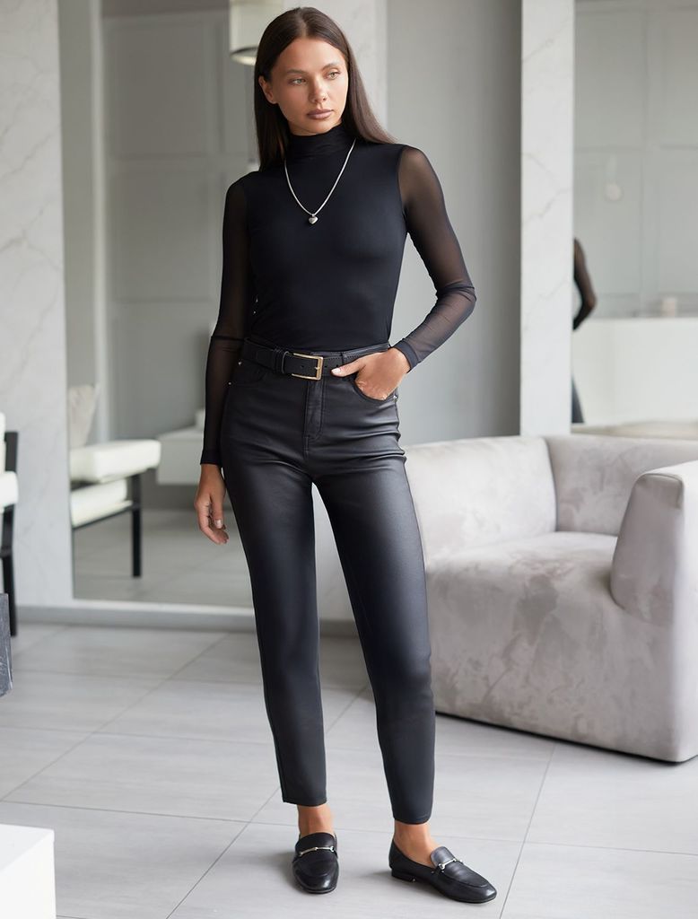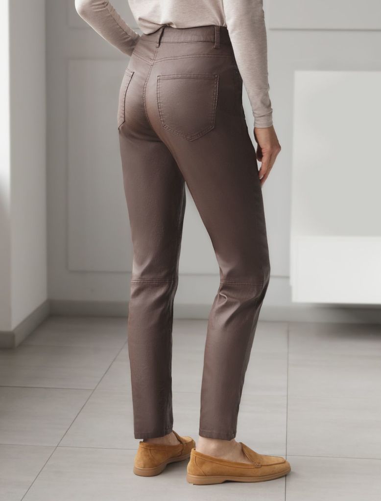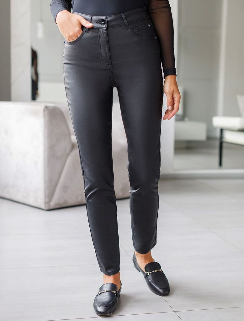 Брюки слим из эластичного хлопка с покрытием под кожуВопросы по товару