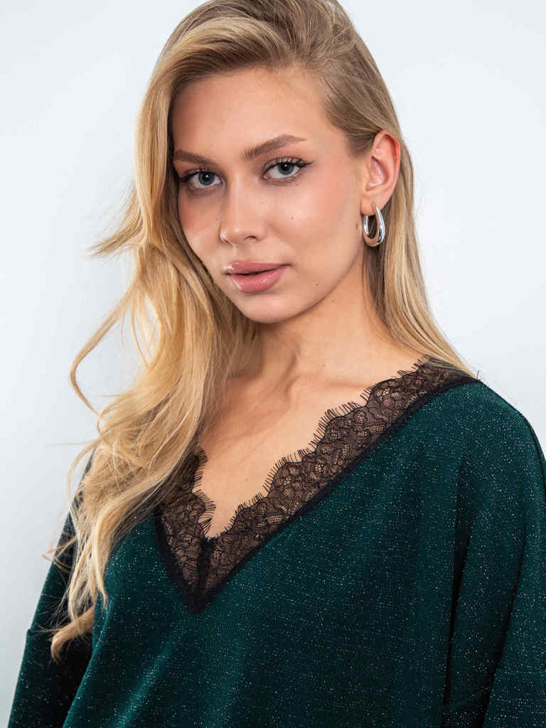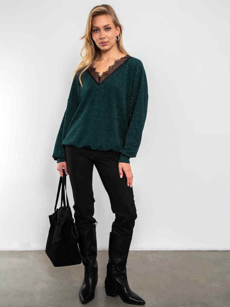 Параметры модели на фото (ОГ-ОТ-ОБ): 80-62-92 Рост модели на фото: 170 см Размер на модели: 44 Состав: 95% п/э, 4% спандекс, 1% металлизированная нить Цвет: Черный Ткань: Вязанный трикотаж Плотность т... Показать описаниекани: Средняя Ткань тянется: Да Страна производства: РОССИЯ Сезон: Всесезонная Стиль: Кэжуал, Повседневный Длина рукава: Длинный рукав Декоративные элементы: Кружево Бренд: kosmos TM Описание Параметры изделия: Длина по спинке: 44/68см; 46/68,5см; 48/69см; 50/69,5см; 52/70см Обхват груди: 44/118см; 46/119см; 48/120см; 50/121см; 52/122см Обхват талии: 44/112см; 46/113см; 48/114см; 50/115см; 52/116см Обхват бедер: 44/90см; 46/94см; 48/98см; 50/102см; 52/106см Длина рукава: 44/60см; 46/60,2см; 48/60,4см; 50/60,6см; 52/60,8см Размер на модели: 44