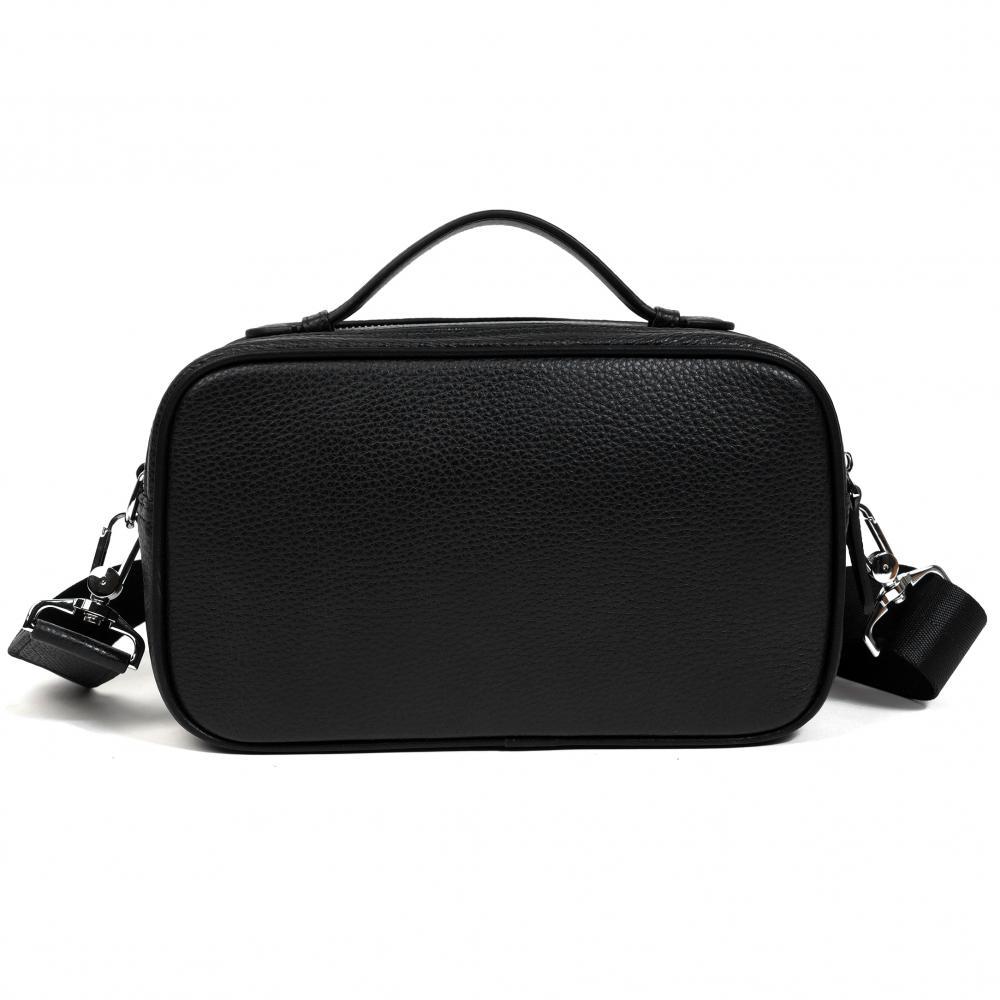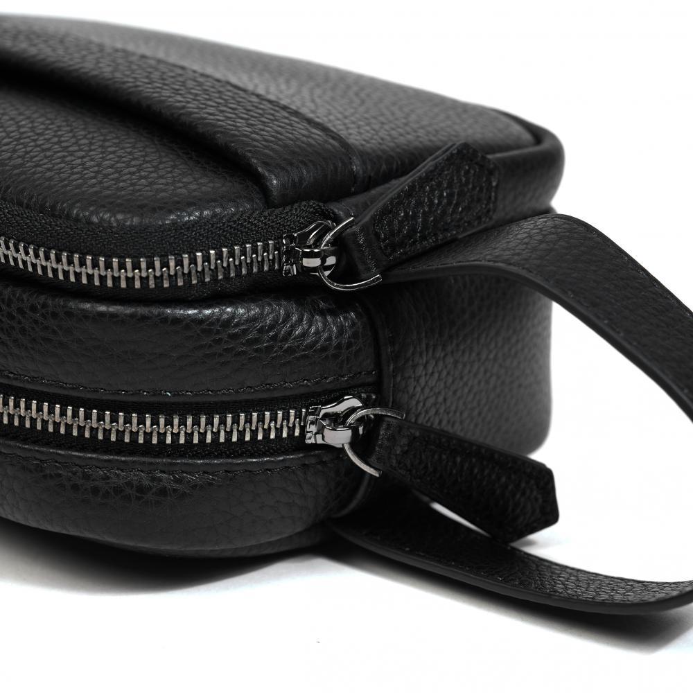 Стильная компактная сумка-слинг MIRONPAN выполнена из натуральной зернистой кожи в классическом черном цвете. Основное отделение закрывается на полукруглую молнию . Внутри 2 боковых кармана для мелоче... Показать описанией: открытый и на молнии. На лицевой стороне расположен карман закрывается на молнию , декорирован ручным плетением. Длина плечевого ремня регулируется, ширина - 3 см. Продуманная система крепления плечевого ремня позволяет носить сумку на плече или через плечо. Цвет фурнитуры - серебро. Вес 560 Размер 15 х 28 х 7 (длина х высота х ширина)