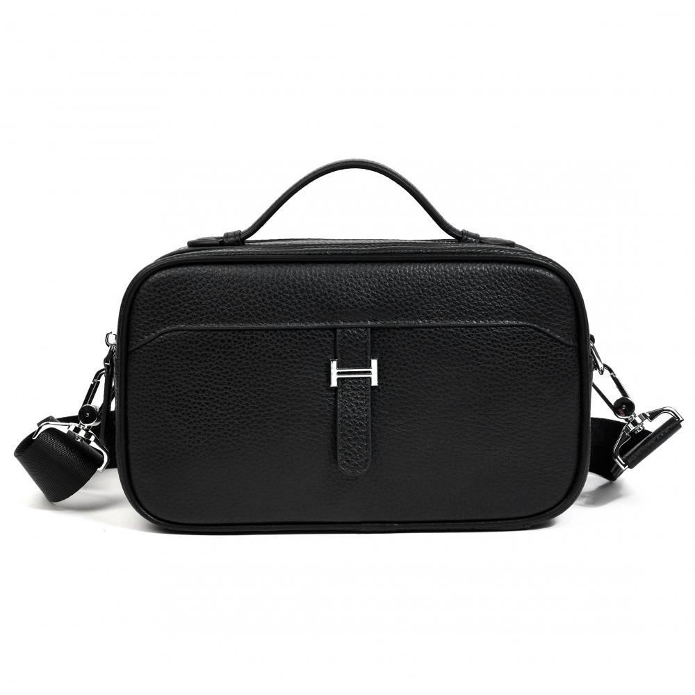 Стильная компактная сумка-слинг MIRONPAN выполнена из натуральной зернистой кожи в классическом черном цвете. Основное отделение закрывается на полукруглую молнию . Внутри 2 боковых кармана для мелоче... Показать описанией: открытый и на молнии. На лицевой стороне расположены 2 кармана разной вместимости. На тыльной стороне также предусмотрен небольшой карман быстрого доступа. Длина плечевого ремня регулируется, ширина - 3 см. Продуманная система крепления плечевого ремня позволяет носить сумку на плече или через плечо. Цвет фурнитуры - серебро. Вес 560 Размер 12 х 19 х 6 (длина х высота х ширина)
