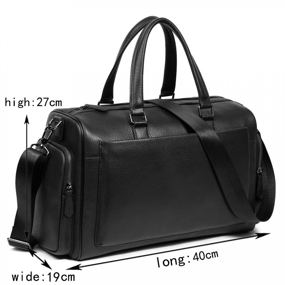 Вместительная сумка MIRONPAN в черном цвете выполнена из натуральной зернистой кожи отличается особой функциональностью. Она идеально подойдет для недолгих поездок , а также будет полезна при похо... Показать описаниеде в спортзал. Основное отделение закрывается на молнию. Внутри расположены 3 боковых кармана. На лицевой и тыльной стороне есть вместительные карманы быстрого доступа закрываются на молнию. На боковых стенках есть два накладных кармана , закрываются на молнию. Есть кожаное крепление для сумки на чемодан, В комплект входит съемный плечевой ремень, длина которого регулируется. Цвет фурнитуры - черное серебро. Вес- 1 650 Размер 40 х 27 х 19 (длина х высота х ширина)