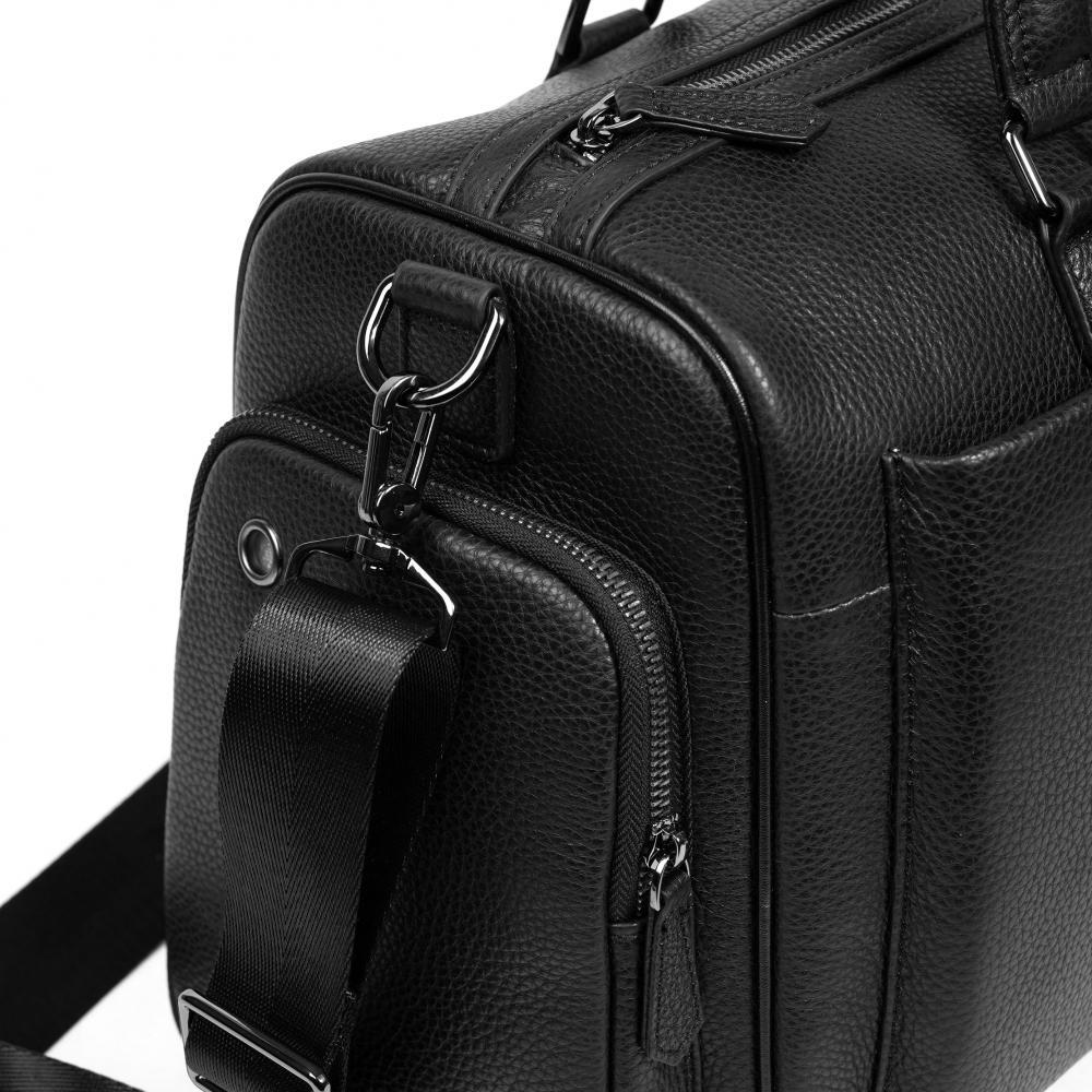 Стильная мужская сумка для документов MIRONPAN выполнена из натуральной зернистой кожи черного цвета. Модель имеет две ручки и съемный плечевой ремень, длина которого регулируется, ширина - 4 см. ... Показать описание;На лицевой стороне расположены 2 вместительных кармана на молнии и на магнитной кнопки. На тыльной стороне также предусмотрен карман быстрого доступа на молнии. Основное отделение закрывается на молнию . Внутри расположены органайзер для ручек и карман на молнии, а также секция с мягкой стенкой для гаджетов. Сумка вмещает формат А4. Цвет фурнитуры - черненое серебро. Вес 1150 Размер: 37 x 27,5 x 4,5 см ( длина x высота x ширина)