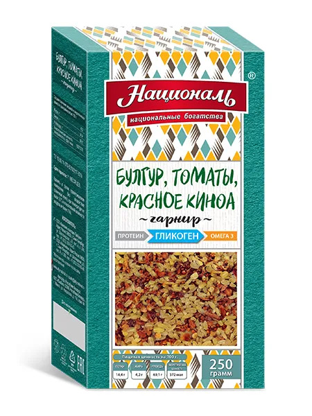 Гарнир "Националь" Омега-3 с такими полезными ингредиентами, как рис, киноа и семена льна, станет незаменимым дополнением на вашем столе. Отличаясь высоким содержанием омега-3 жирных кислот, он поддер... Показать описаниеживает здоровье сердечно-сосудистой системы, улучшает состояние кожи и способствует общему благополучию организма. Рис, являясь основой продукта, придаёт блюду нежную текстуру и мягкий вкус. Его сочетание с киноа обеспечивает организму комплекс медленных углеводов и белков, которые дарят ощущение сытости на длительное время. Киноа, известная как суперфуд, богата необходимыми аминокислотами, витаминами и минералами, благодаря чему обогащает рацион питательными веществами. Эти два злака прекрасно дополняют друг друга, создавая гармоничную основу для любого кулинарного эксперимента. Семена льна, помимо высокого содержания омега-3, наделяют блюдо ореховым вкусом и приятной хрусткостью. Они являются отличным источником клетчатки, которая помогает поддерживать нормальную работу желудочно-кишечного тракта и способствует выведению токсинов из организма. Включение семян льна в рацион помогает улучшить обменные процессы и поддерживать здоровый вес, что делает такой гарнир ещё более ценным для современного человека, стремящегося к здоровому образу жизни. Несомненно, гарнир "Националь" Омега-3 добавит разнообразие в ваш повседневный рацион. Он универсален и станет удачным дополнением как к мясным, так и к овощным блюдам. Легкость в приготовлении и изысканный вкус делают его удобным и вкусным выбором для любого случая, будь то семейный ужин или праздничный обед. Попробовав этот гарнир, вы непременно оцените его полезные свойства и многообразие вкусовых оттенков.