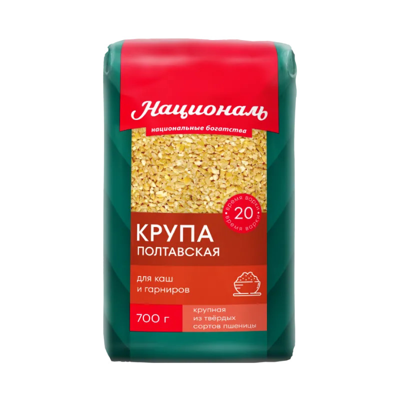 Крупа изготовлена из пшеницы. Ее могут называть "Артек", "Пшеничка", но именно у "Полтавской" самые крупные по размеру зерна. После варки крупа остается рассыпчатой и зернистой, из нее можно готовить ... Показать описаниене только каши, но и добавлять в супы и использовать в качестве гарнира. Торговая марка: Националь. Вес: 700 г
