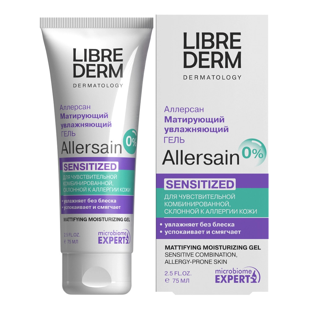 Бренд LIBREDERM - современные решения для любой дерматологической потребности.Линия Аллерсан [Allersain] - разработана специально с учетом особенностей и потребностей чувствительной кожи, склонной к а... Показать описаниеллергии. В линию вошли средства, мгновенно успокаивающие и восстанавливающие чувствительную кожу, а также способствующие увлажнению и усилению естественной защитной функции кожи. Кроме того, в коллекции есть продукты для бережного очищения, ухода за кожей деликатной зоны вокруг глаз, ночного и тонизирующего ухода. ЛИБРИДЕРМ ALLERSAIN ГЕЛЬ МАТИРУЮЩИЙ УВЛАЖНЯЮЩИЙ ДВОЙНОЕ ВОССТАНОВЛЕНИЕ ДЛЯ ЧУВСТВИТЕЛЬНОЙ/СКЛОННОЙ К ЖИРНОСТИ КОЖИ - для чувствительной комбинированной, склонной у аллергии кожи.Внешний вид и свойства: Легкая гелевая текстура без липкости.Возраст: с 14 лет Оказывает благотворное воздействие на микробиом, восстанавливает целостность кожного барьера, позволяя сохранить кожу увлажненной надолго без жирного блеска.Повышает тонус, улучшает рельеф.Одобрено дерматологами.Максимально снижен риск возникновения аллергических реакций. ДЕЙСТВИЕ:-увлажняет без блеска-успокаивает и смягчает АКТИВНЫЕ ИНГРЕДИЕНТЫ:-Церамиды восстанавливают защитную функцию кожи, улучшают ее увлажненность, уменьшая чувствительность и сухость.-Пептидный комплекс заметно улучшает состояние чувствительной кожи, успокаивает.-Экстракт ландыша японского нормализует микробиом кожи, усиливает ее защитный барьер. Специальные особенности: Некомедогенный.Результат: Матовая кожа без раздражения.
