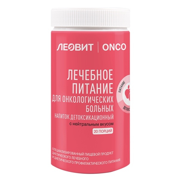 Леовит onco/онко напиток детоксикационный для онкологических больных с нейтральным вкусом - это специализированный пищевой продукт диетического лечебного и диетического профилактического питания, абсо... Показать описаниелютно новая форма нутритивной поддержки, которая разработана совместно с врачами онкологами для решения проблем питания и улучшения общего состояния онкологических больных, в том числе усугубляющимися в процессе лечения. Напиток снижает интоксикацию организма и окислительный стресс, обладает антиоксидантным, общеукрепляющим действием, поддерживает антитоксическую функцию печени, улучшает обмен веществ, физическое состояние пациентов, нормализует аппетит и способствует восстановлению роста волос. Питание ЛЕОВИТ ONCO рекомендовано: во время и после противоопухолевой терапии, после проведения операции по удалению опухоли , при затруднении прохождения пищи или нарушении всасывания питательных веществ, для предупреждения потери веса, сил и нарушения аппетита или нежелания принимать пищу.