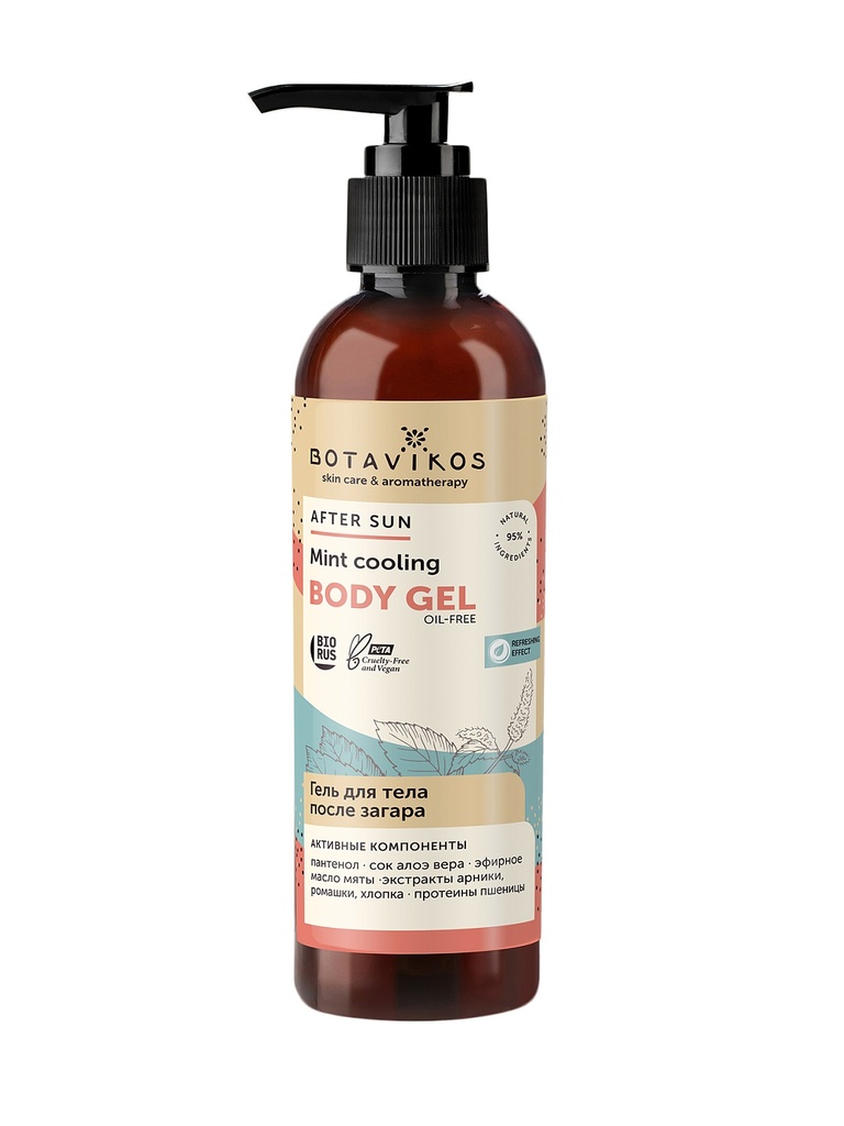 Невесомый охлаждающий гель после загара способствует скорейшему восстановлению кожи после солнечных ванн. Пантенол и сок алоэ вера разглаживают эпидермис и ускоряют заживление его поврежденных участко... Показать описаниев. Аминокислотный комплекс защищает кожу от окислительного стресса и усиливает ее барьерные функции. Гидролизованные протеины пшеницы глубоко увлажняют кожу. Благодаря содержанию натуральных полисахаридов, средство успокаивает эпидермис и создает на его поверхности микропленку, которая препятствует потере влаги. Экстракты ромашки и хлопка смягчают кожу и ускоряют ее регенерацию. Чистые оптимистичные ноты эфирного масла мяты подарят освежающий аромат и заряд бодрости. Подходит для всех типов кожи. Активные компоненты: сок алоэ вера масло мяты пантенол протеины пшеницы экстракты ромашки, хлопка натуральные полисахариды No mineral oil, No silicone, No colorants, NO SLES, no PEG, no paraben, Animal-friendly