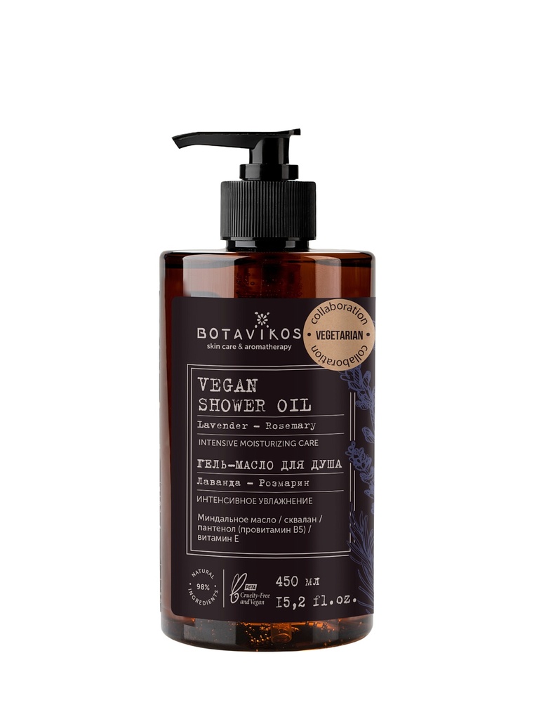 Гель-масло для душа Лаванда-Розмарин выпущено в коллаборации с Vegetarian и предназначено для бережного очищения и интенсивного увлажнения кожи. Мягкая шелковистая текстура глубоко увлажняет, помогает... Показать описание восстановить естественный защитный барьер и дарит ощущение комфорта. Кожа становится гладкой, мягкой и защищённой от сухости. ✔️ Сохраняет кожу увлажнённой ✔️ Смягчает и предотвращает сухость и стянутость ✔️ Погружает в ароматерапевтический уход Аромат эфирных масел лаванды и розмарина помогает замедлиться, снять напряжение и почувствовать внутреннюю собранность — лаванда успокаивает, розмарин освежает восприятие. Активные компоненты: Миндальное масло — глубоко питает и смягчает кожу, повышает эластичность и помогает поддерживать естественный барьер. Пантенол (провитамин B5) — удерживает влагу, восстанавливает кожу и снимает раздражение. Сквалан — предотвращает потерю влаги, уменьшает ощущение сухости и стянутости. Витамин Е — мощный антиоксидант, защищает от внешних факторов, питает и делает кожу сияющей. Гель-масло для душа Лаванда-Розмарин не содержит силиконов, парабенов, минеральных масел, компонентов животного происхождения, не тестируется на животных. No mineral oil, No silicone, No colorants, NO SLES, no PEG, no parabens, Animal-friendly.