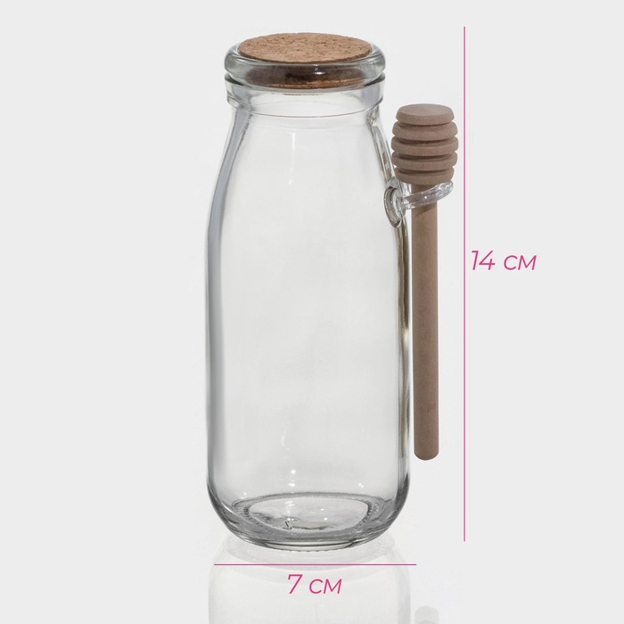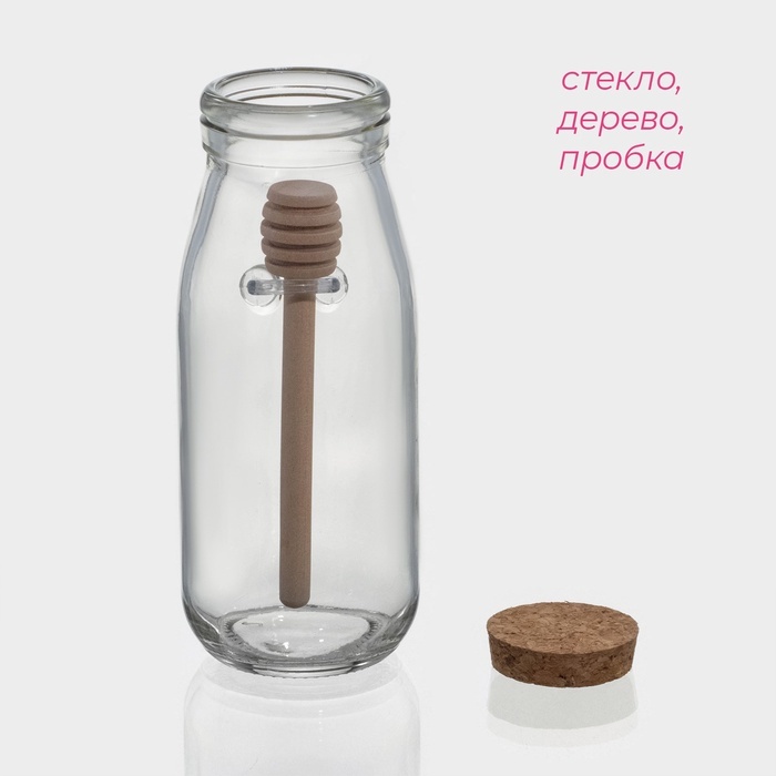 Ёмкость для мёда и варенья Доляна «Парфе», 250 мл, 7?14 см, с деревянной ложкой, стекло, прозрачная, МИКС видаВопросы по товару