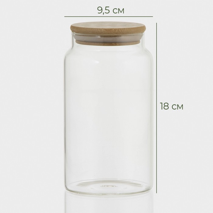 Банка для сыпучих Bella Tenero «Эко», 1 л, 9.5?18 см, с бамбуковой крышкой, стекло, прозрачнаяВопросы по товару