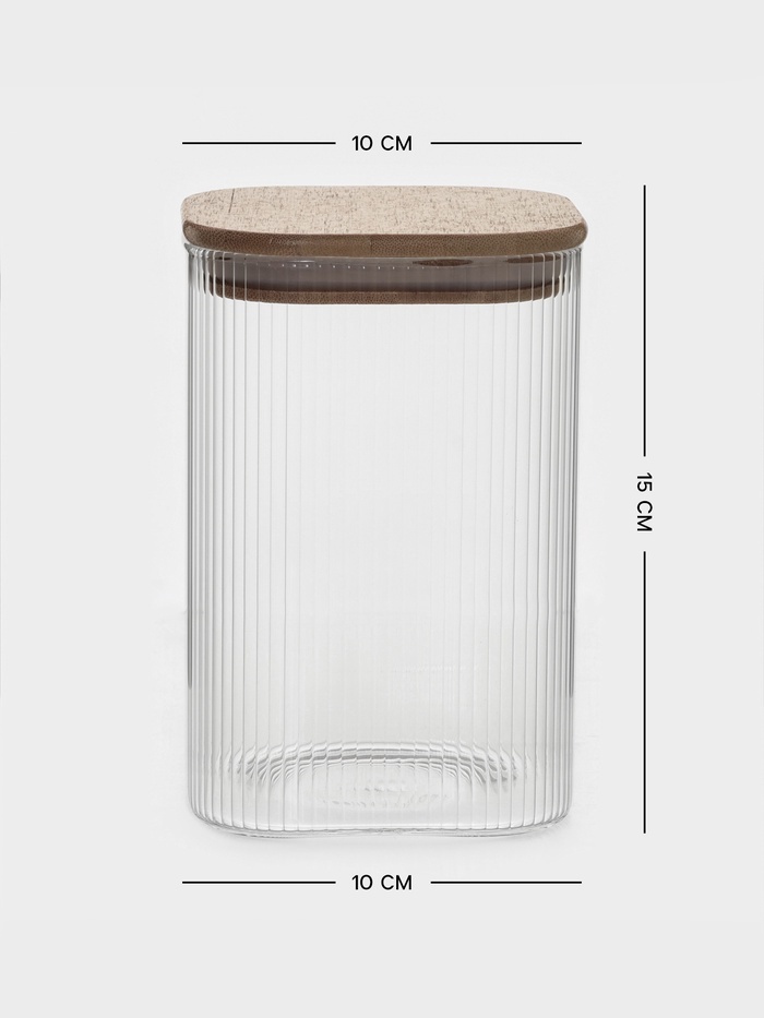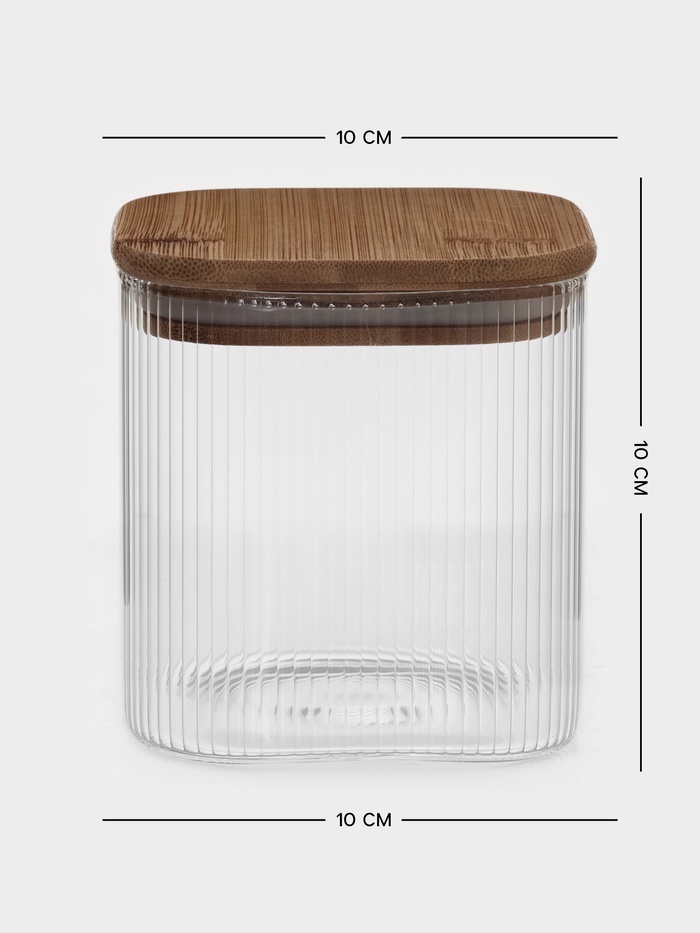 Сделайте шаг к организации пространства и созданию уюта на кухне вместе с банкой для сыпучих продуктов, которая станет не только функциональным, но и эстетичным элементом кухни. Объем 800 мл и квадрат... Показать описаниеная форма позволяют удобно размещать её на полках, а прозрачное стекло дает возможность видеть содержимое, что упрощает процесс выбора необходимых ингредиентов. Бамбуковая крышка с герметичным уплотнением обеспечивает надёжную защиту от влаги и воздуха, сохраняя свежесть продуктов на долгое время. Преимущества: * Эстетичный дизайн: квадратная форма и рельефное стекло придают банке современный вид, который отлично впишется в любой интерьер. * Качество материалов: прочное стекло и бамбуковая крышка гарантируют долговечность и устойчивость к повреждениям. * Герметичность: вакуумная крышка надежно защищает содержимое от внешних факторов, сохраняя его свежесть. * Удобство в использовании: лёгкость в уходе и возможность мытья в посудомоечной машине делают эту банку идеальным выбором для активной кухни. * Универсальность: подходит для хранения различных сыпучих продуктов, таких как крупы, сахар, мука и многое другое. Дополнительно Рекомендации по уходу и эксплуатации: Можно мыть в посудомоечной машине без бамбуковой крышки.