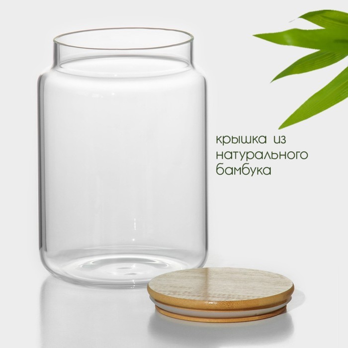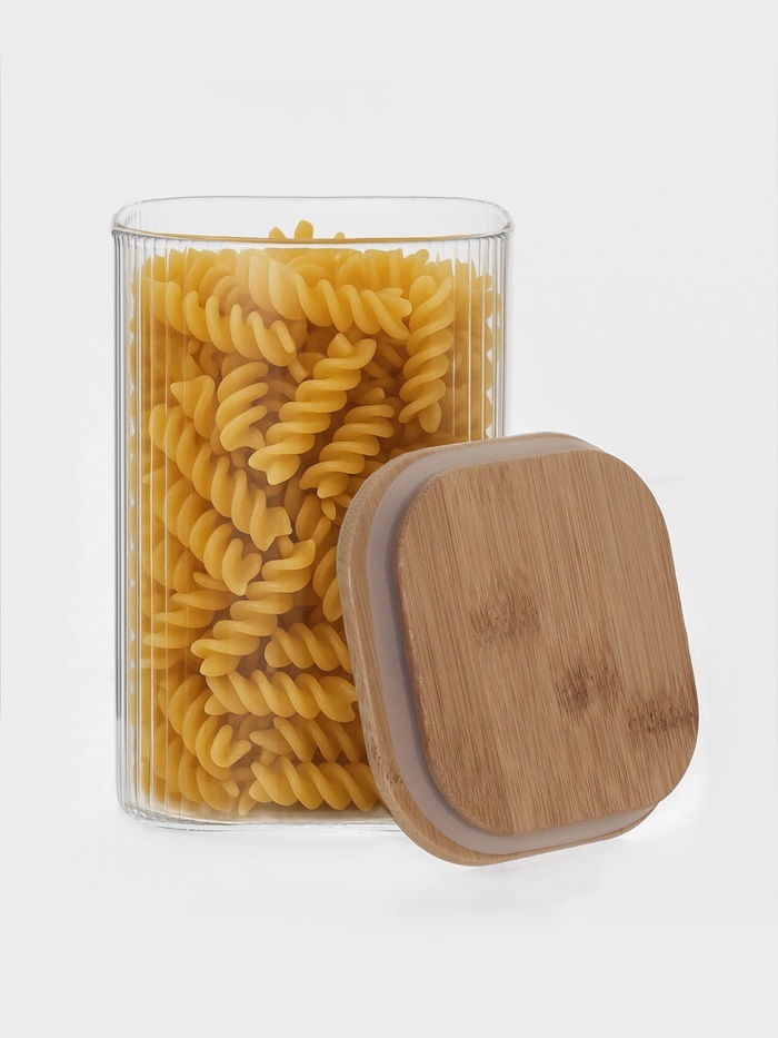 Банка стеклянная для хранения сыпучих продуктов — банка оснащена бамбуковой крышкой, которая обеспечивает герметичность и защиту продуктов от влаги и посторонних запахов. Благодаря своему лаконичному ... Показать описаниедизайну, она впишется в любой интерьер и станет стильным элементом вашей кухни. Благодаря своей универсальности и удобству использования, эта банка станет незаменимым помощником в вашем доме. Вы сможете хранить различные виды продуктов, такие как крупы, специи, макаронные изделия, сахар, муку и бобовые, в одном месте. Преимущества товара: * Высокое качество: изготовлен из прочных и долговечных материалов, что гарантирует долгий срок службы. * Экологичность: товар не содержит вредных веществ и изготовлен из безопасных материалов, что делает его безопасным для здоровья. * Эффективность: обладает высокой эффективностью в выполнении своих функций, что позволяет достичь лучших результатов. Дополнительно Баночку можно мыть в ПММ без крышки