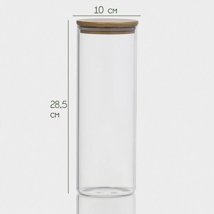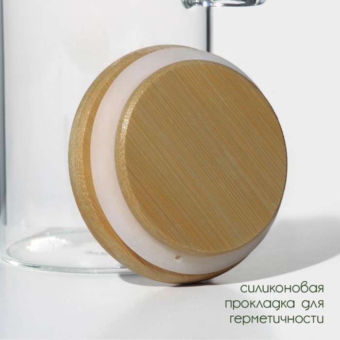 Банка для сыпучих Bella Tenero «Эко», 1.4 л, 10?25.5 см, с бамбуковой крышкой, стекло, прозрачнаяВопросы по товару