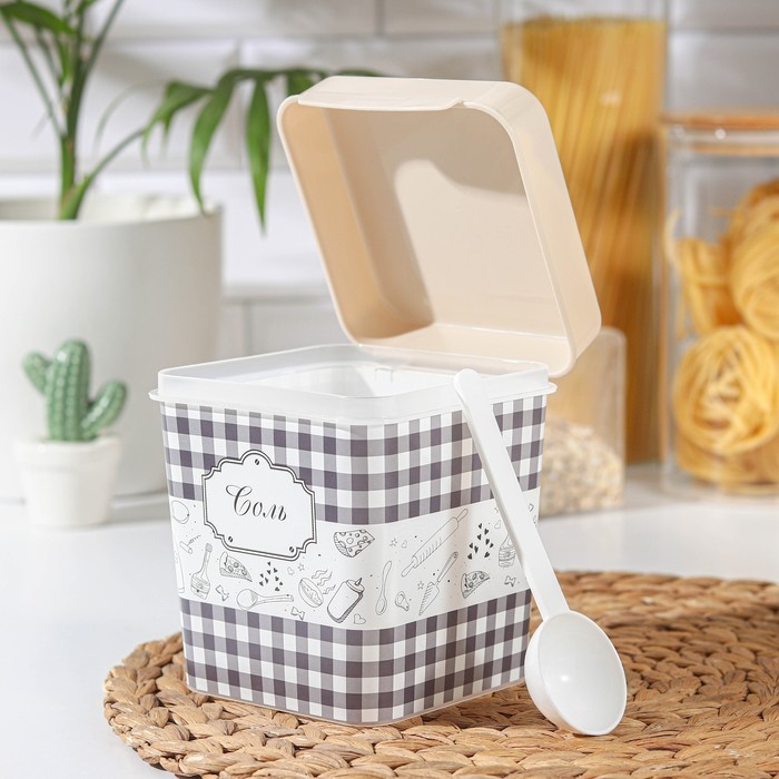Ёмкость для соли с ложкой Альтернатива «Плетёнка. Соль», 1.2 л, пластик, бежеваяВопросы по товару