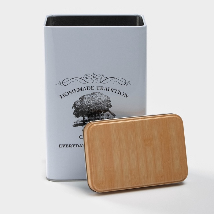 Храните сыпучие продукты аккуратно и со вкусом. Жестяная банка для хранения объёмом 1,8 литра в белом цвете и с рисунком отлично впишется в кухонный интерьер и поможет организовать пространство. Особе... Показать описаниенности: * Вместительность и форма: прямоугольный контейнер предлагает удобный объём для круп, специй или чая, обеспечивая рациональное использование места на полке. * Надёжность материала: корпус из жести защищает содержимое от влаги и посторонних запахов, сохраняя свежесть продуктов. * Практичная крышка: металлическая крышка легко снимается и плотно прилегает, облегчая процесс хранения и доступ к продуктам. * Декоративность и лаконичность: белоснежный цвет с изящным рисунком добавляет эстетики, органично сочетаясь с разным стилем кухни. Такая банка станет функциональным и стильным решением для хранения сыпучих продуктов, сохраняя их свойства и упрощая организацию пространства. Дополнительно Нельзя мыть в посудомоечной машине. Рекомендуется ручная мойка без использования агрессивных моющих средств, после чего сразу вытирать насухо.