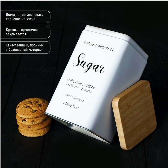 Организуйте пространство с лаконичностью и стилем. Металлический контейнер для сахара объёмом 1,1 литра отличается компактной квадратной формой и белым цветом, гармонично вписываясь в интерьер любой к... Показать описаниеухни. Особенности: * Защита от внешних воздействий: прочный корпус из жести сохраняет свежесть сыпучих продуктов, предотвращая проникновение влаги и посторонних запахов. * Оптимальный объём: 1,1 литра – удобный размер для повседневного использования, позволяющий всегда иметь под рукой нужное количество сахара. * Удобство хранения: геометрия ёмкости обеспечивает эффективную организацию места на полках и столешнице. * Практичная крышка: надёжно закрывает контейнер, упрощая доступ к содержимому без лишних усилий. * Гладкая поверхность с декором: сочетает функциональность и декоративность, добавляет элегантности в кухонный ансамбль. Банка подходит не только для сахара, но и для хранения других сухих ингредиентов. Его компактность и функциональность помогут поддерживать чистоту и структуру рабочего пространства, оставляя только приятные моменты приготовления. Дополнительно Нельзя мыть в посудомоечной машине. Рекомндуется мыть вручную, после сразу вытирать насухо.