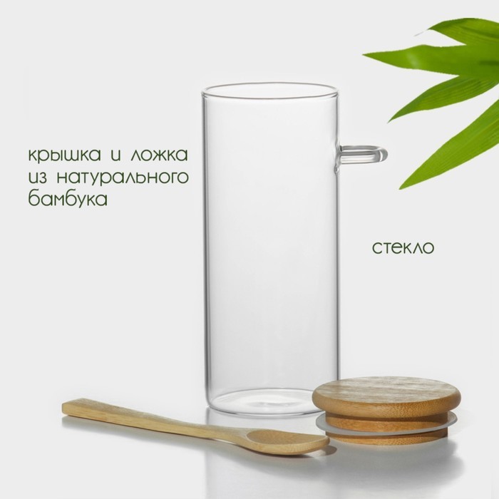 Банка для сыпучих BellaTenero «Эко», 420 мл, 6.7?15.5 см, с бамбуковой крышкой, с ложкой, стекло, прозрачнаяВопросы по товару
