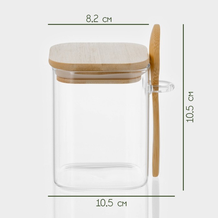 Банка для сыпучих BellaTenero «Эко», 500 мл, 10.5?8.2?10.5 см, с бамбуковой крышкой и ложкой, стекло, прозрачнаяВопросы по товару