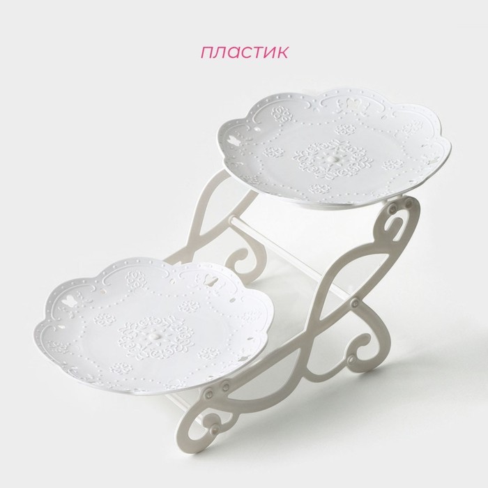 Блюдо для торта и пирожных 2-х ярусное Доляна «Вивьен», d=22 см, 36?22?19.5 см, белоеВопросы по товару