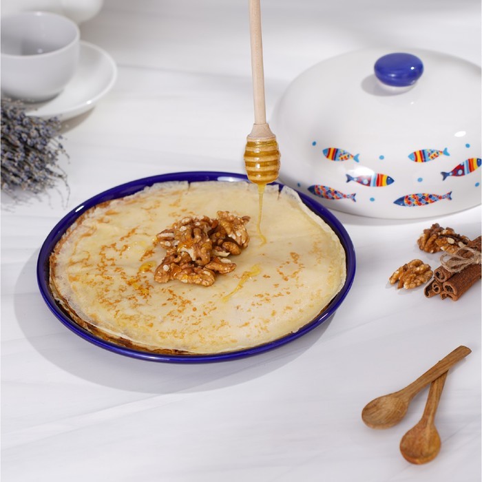 Блюдо для блинов Доляна изготовлено из доломитовой керамики высокого качества и украшено красивым рисунком. Изделие оснащено крышкой и предназначено для сохранения температуры блинов перед подачей на ... Показать описаниестол. Такое блюдо понравится любителям яркого оригинального дизайна и станет неотъемлемым атрибутом. Блюдо упаковано в индивидуальную коробку. Дополнительно Рекомендации по использованию посуды из доломита: 1. Соблюдайте аккуратность при обращении с доломитовыми предметами. Не забывайте об их хрупкости. 2. Мыть изделия можно только вручную в тёплой воде с использованием мягкой губки и неабразивных чистящих средств. 3. Если вы заметили сколы, трещины или другие повреждения, посуду следует выбросить. Использовать её нельзя.
