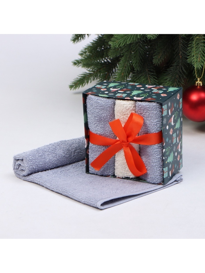 Набор махровых полотенец Merry Christmas 30?30 см - 3 шт., хлопок 340 г/м?