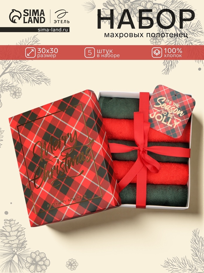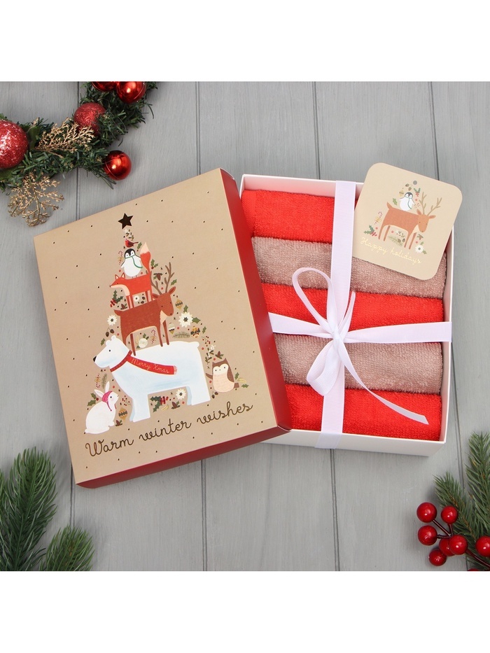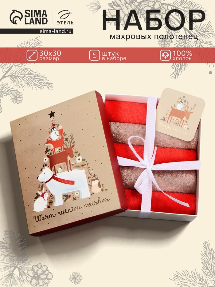 Набор махровых полотенец «Этель. Звериная ёлка», 30?30 см - 5 шт., хлопок 100%