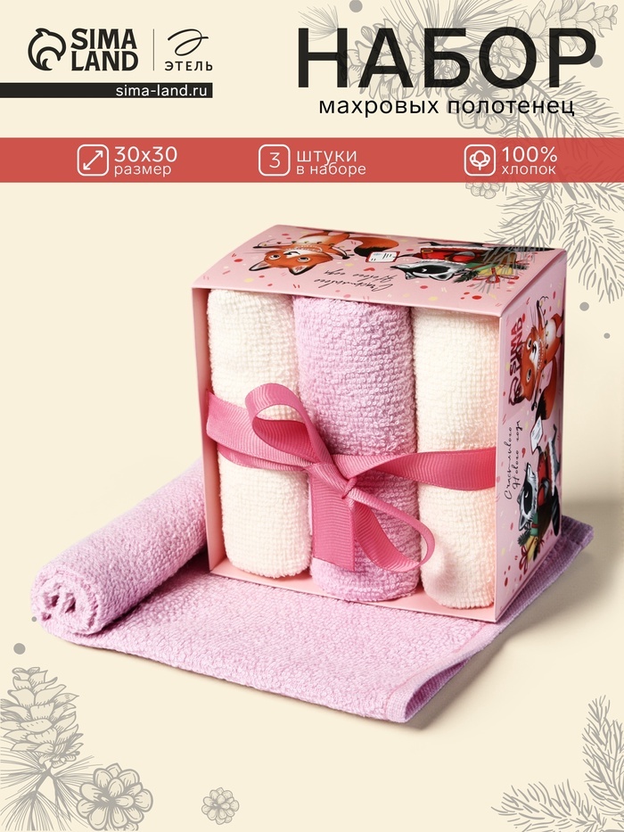 Набор махровых полотенец «Этель. Енот и лисичка», 30?30 см - 3 шт., хлопок 100%