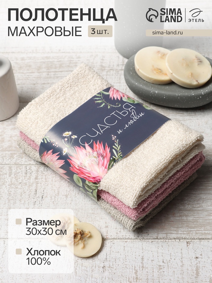 Набор махровых полотенец «Этель. Счастья», 30?30 см - 3 шт., хлопок 100% Вопросы по товару