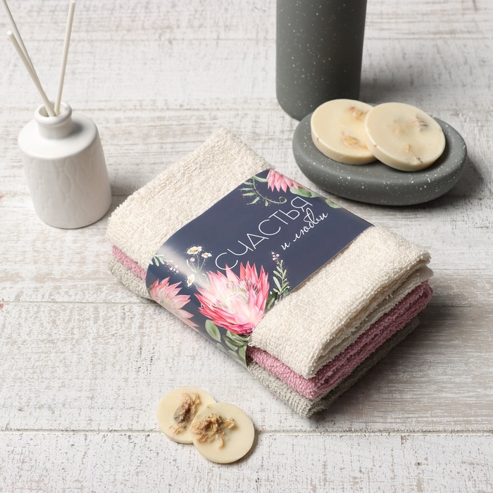 Набор махровых полотенец «Этель. Счастья», 30?30 см - 3 шт., хлопок 100%Набор махровых полотенец «Этель. Счастья», 30?30 см - 3 шт., хлопок 100%Набор махровых полотенец «Этель. Счастья», 30?30 см - 3 шт., хлопок 100%