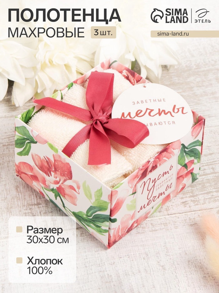 Набор махровых полотенец «Пусть сбываются мечты» 30?30 см - 3 шт., хлопок 340 г/м?Набор махровых полотенец «Пусть сбываются мечты» 30?30 см - 3 шт., хлопок 340 г/м?Набор махровых полотенец «Пусть сбываются мечты» 30?30 см - 3 шт., хлопок 340 г/м?