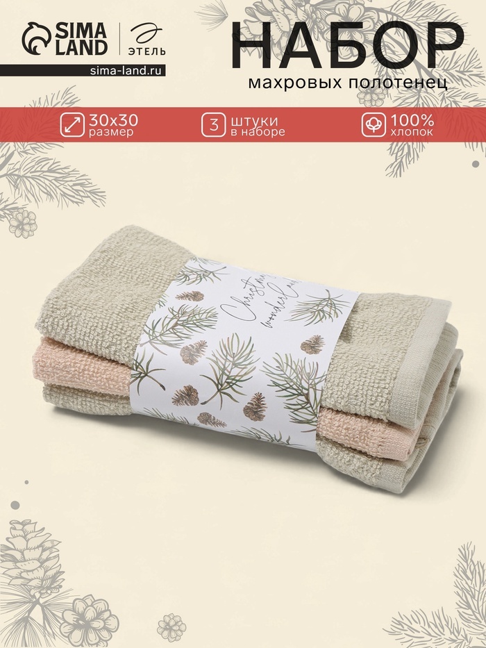 Набор махровых полотенец Merry Christmas 30?30 см - 3 шт., хлопок 340 г/м?Набор махровых полотенец Merry Christmas 30?30 см - 3 шт., хлопок 340 г/м?Набор махровых полотенец Merry Christmas 30?30 см - 3 шт., хлопок 340 г/м?