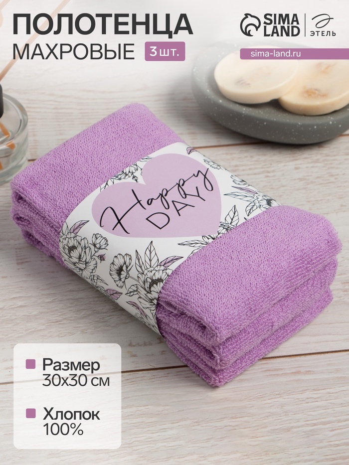Набор махровых полотенец Happy day, 30?30 см - 3 шт., 340 г/м?, 100% хлопок Вопросы по товару